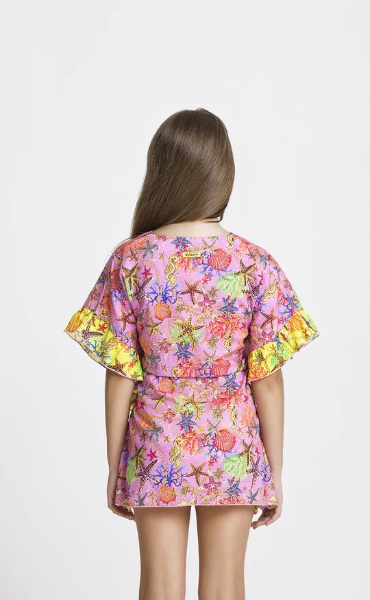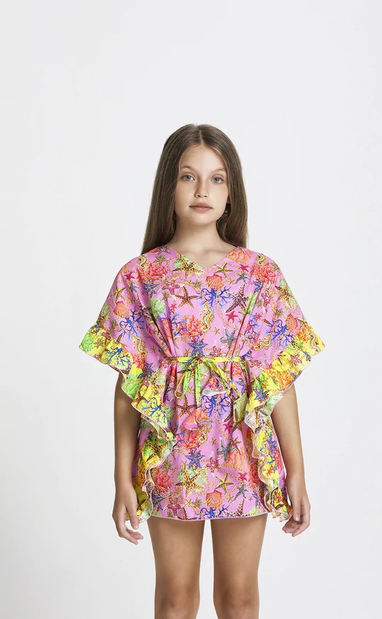 Caftano bimba in fantasia con laccetto in vita.