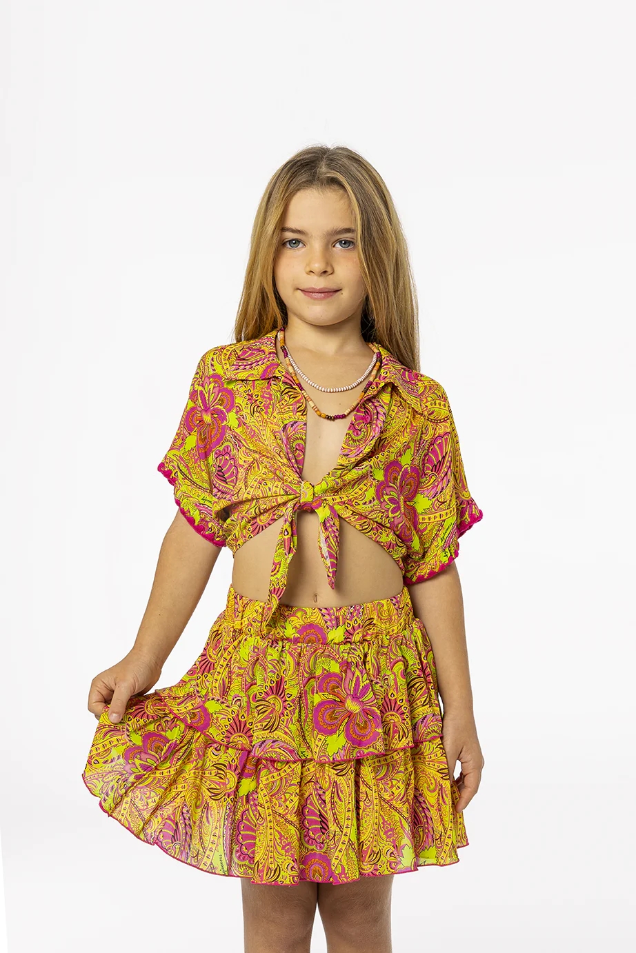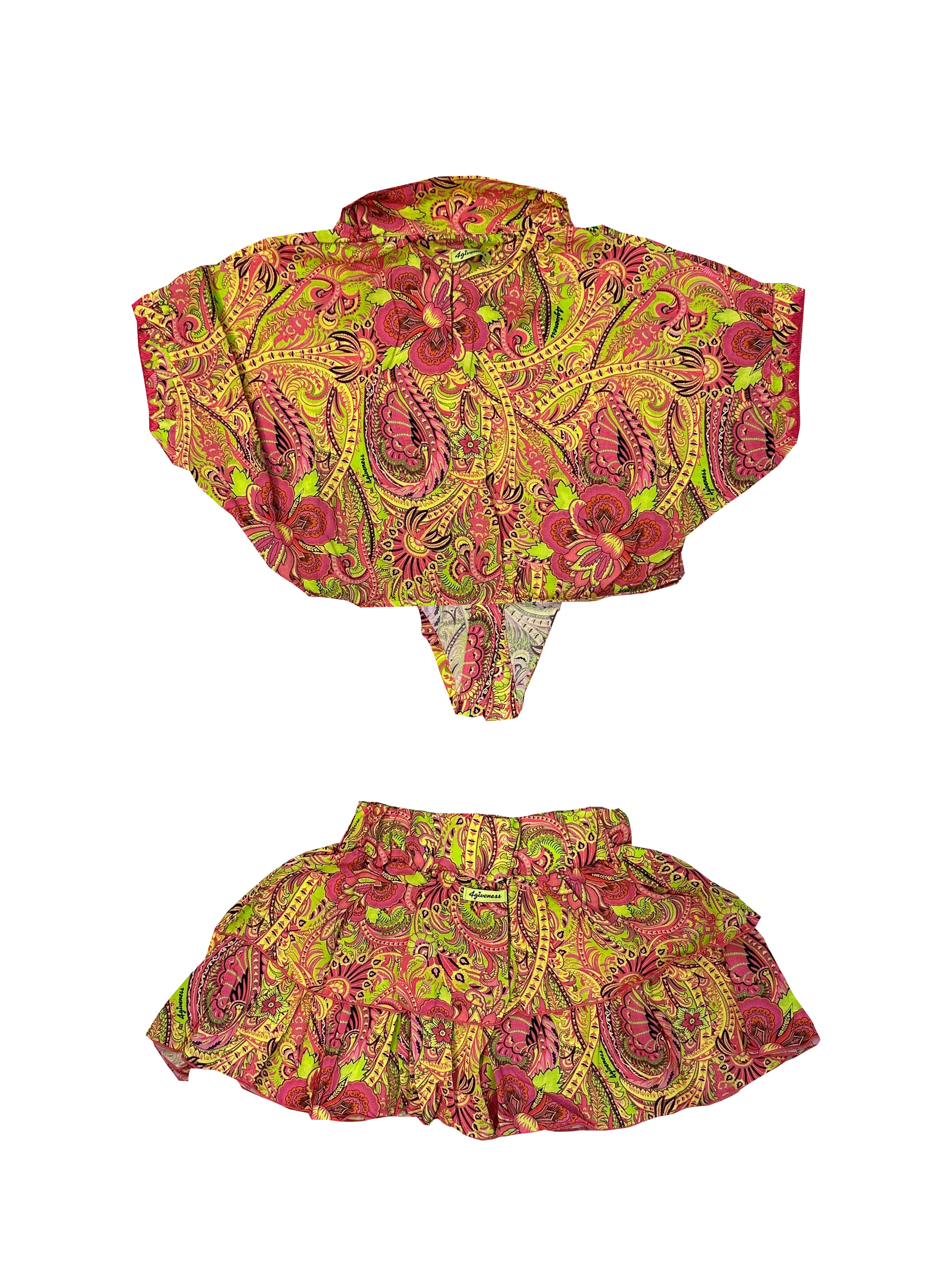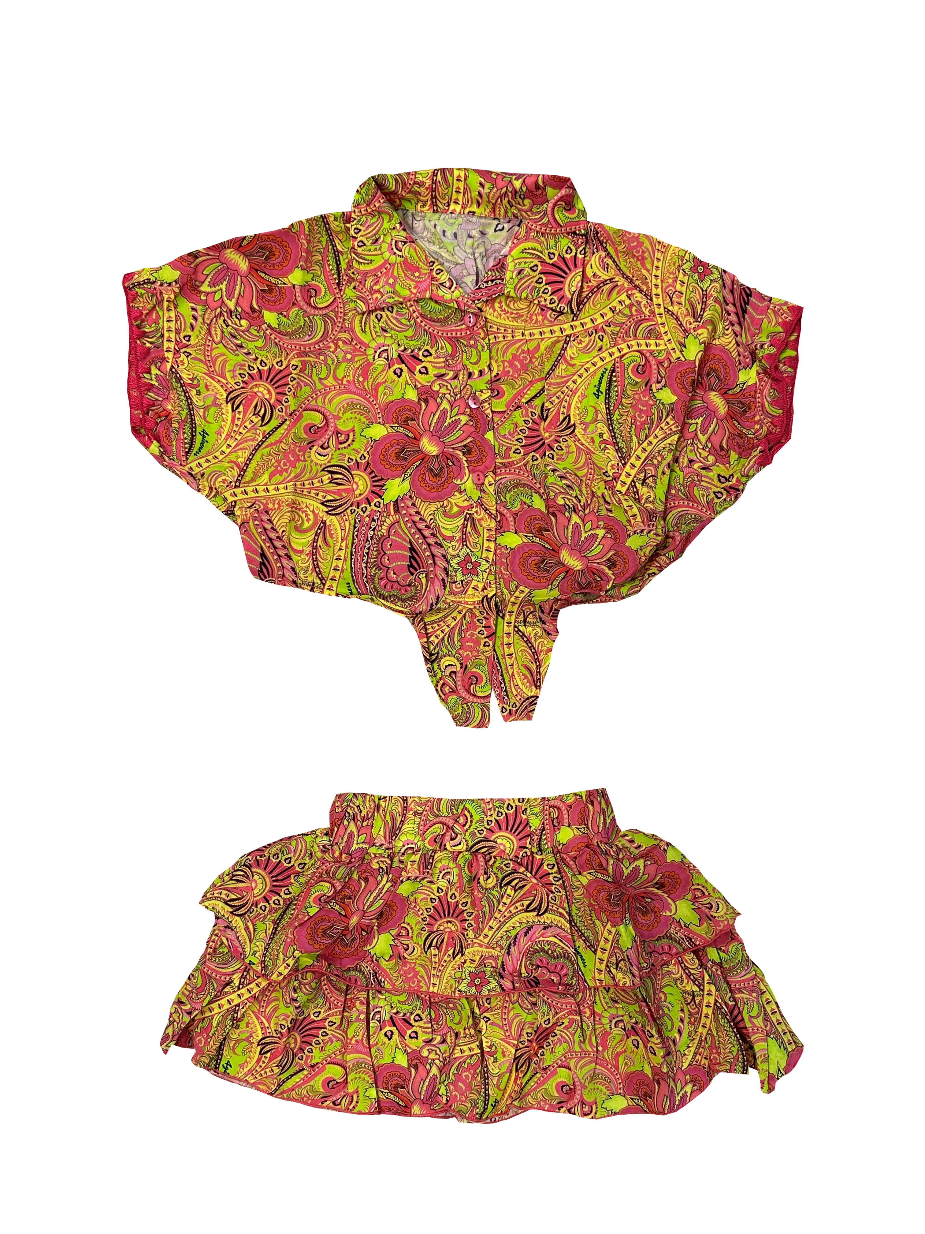 Copricostume fantasia composto da gonna e blusa con nodo.