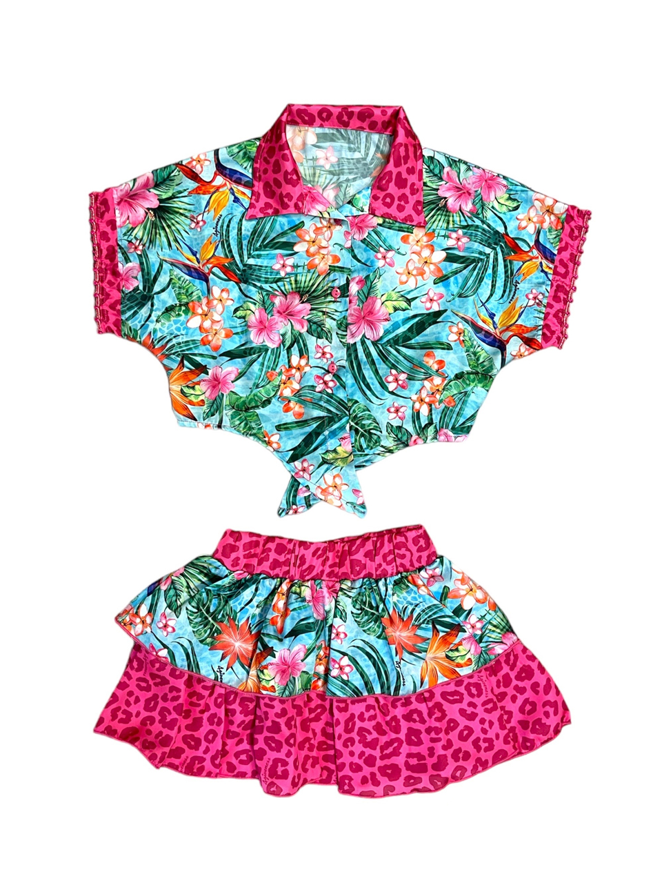 Copricostume fantasia composto da gonna e blusa con nodo.