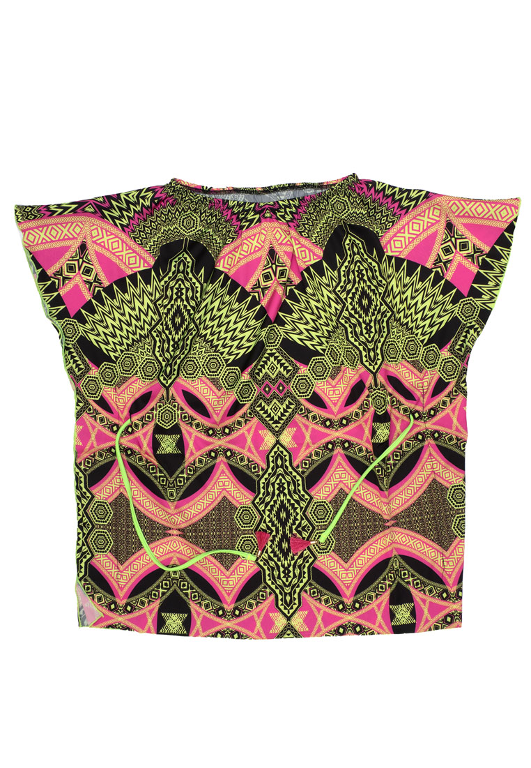 stampa maori di colore verde,mezza manica con coulisse in vita.