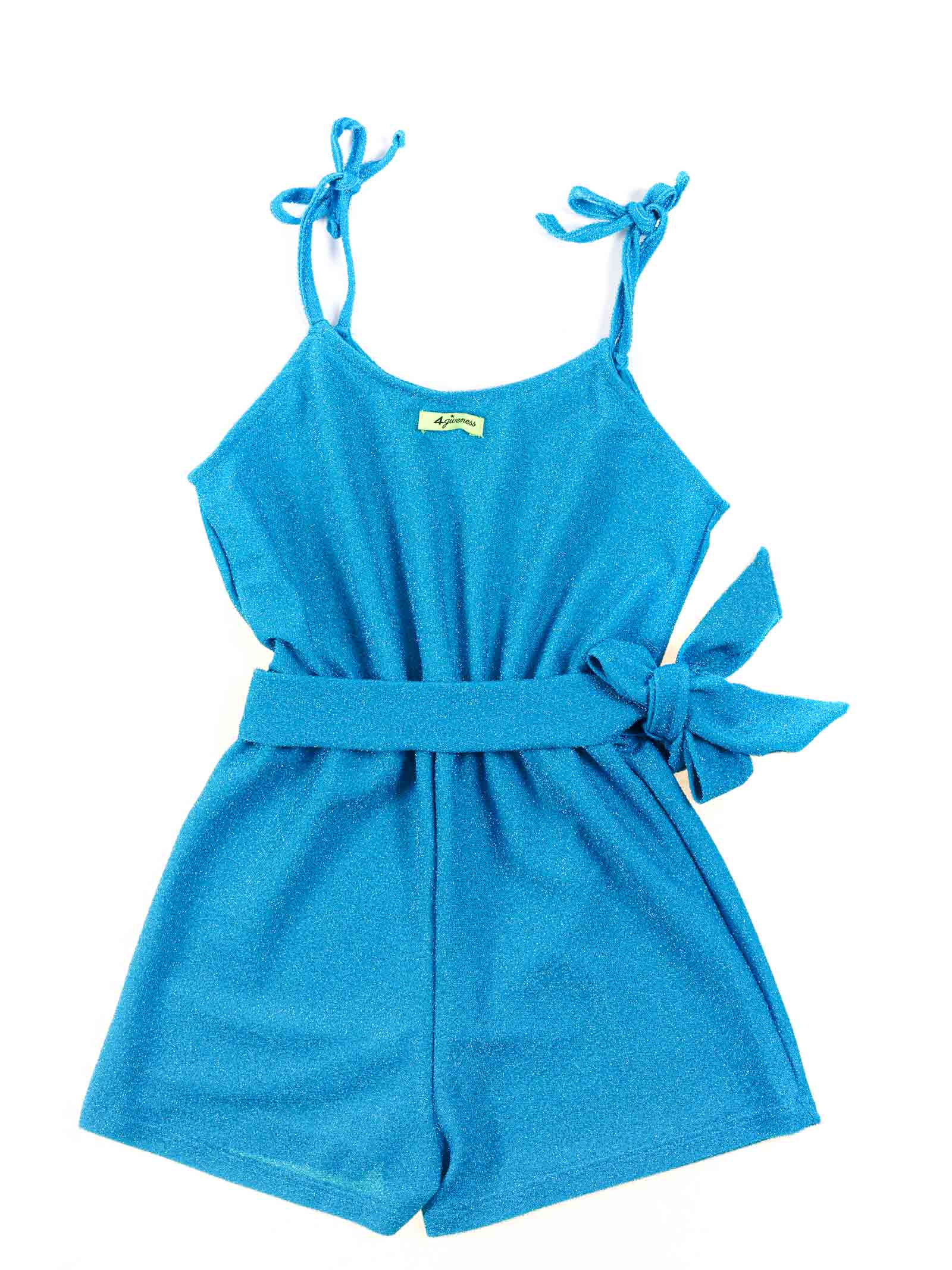di colore turchese, con coulisse in vita e spalline regolabili.