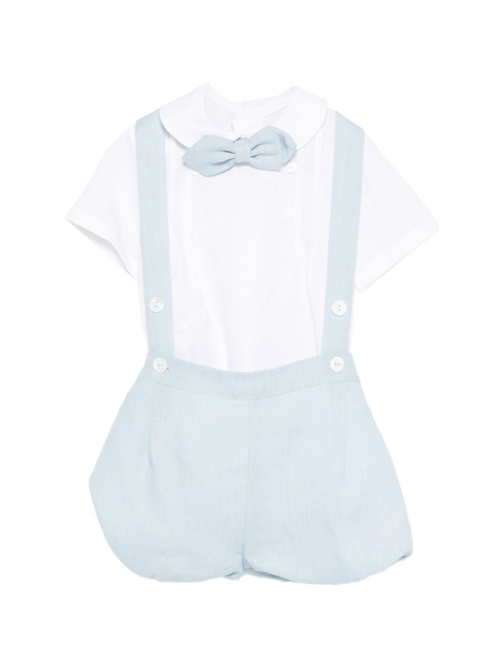 Completino con papillon, pagliaccetto con bretelle e camicia