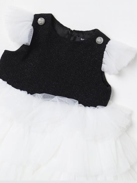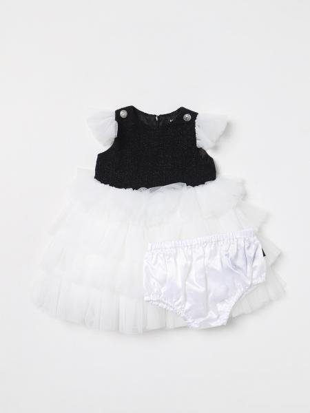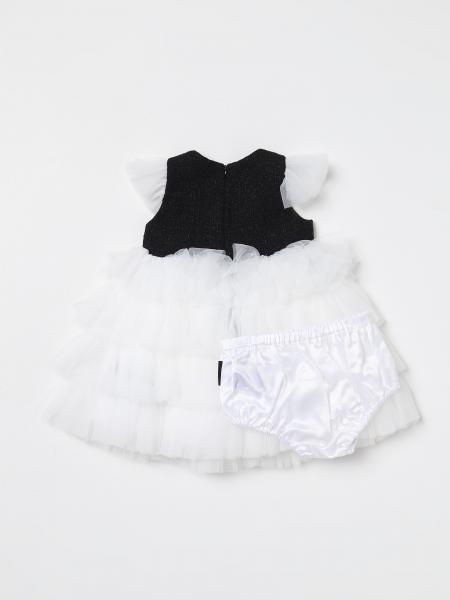 Abito bianco e nero a balze con ruches , dispone di coulotte.
