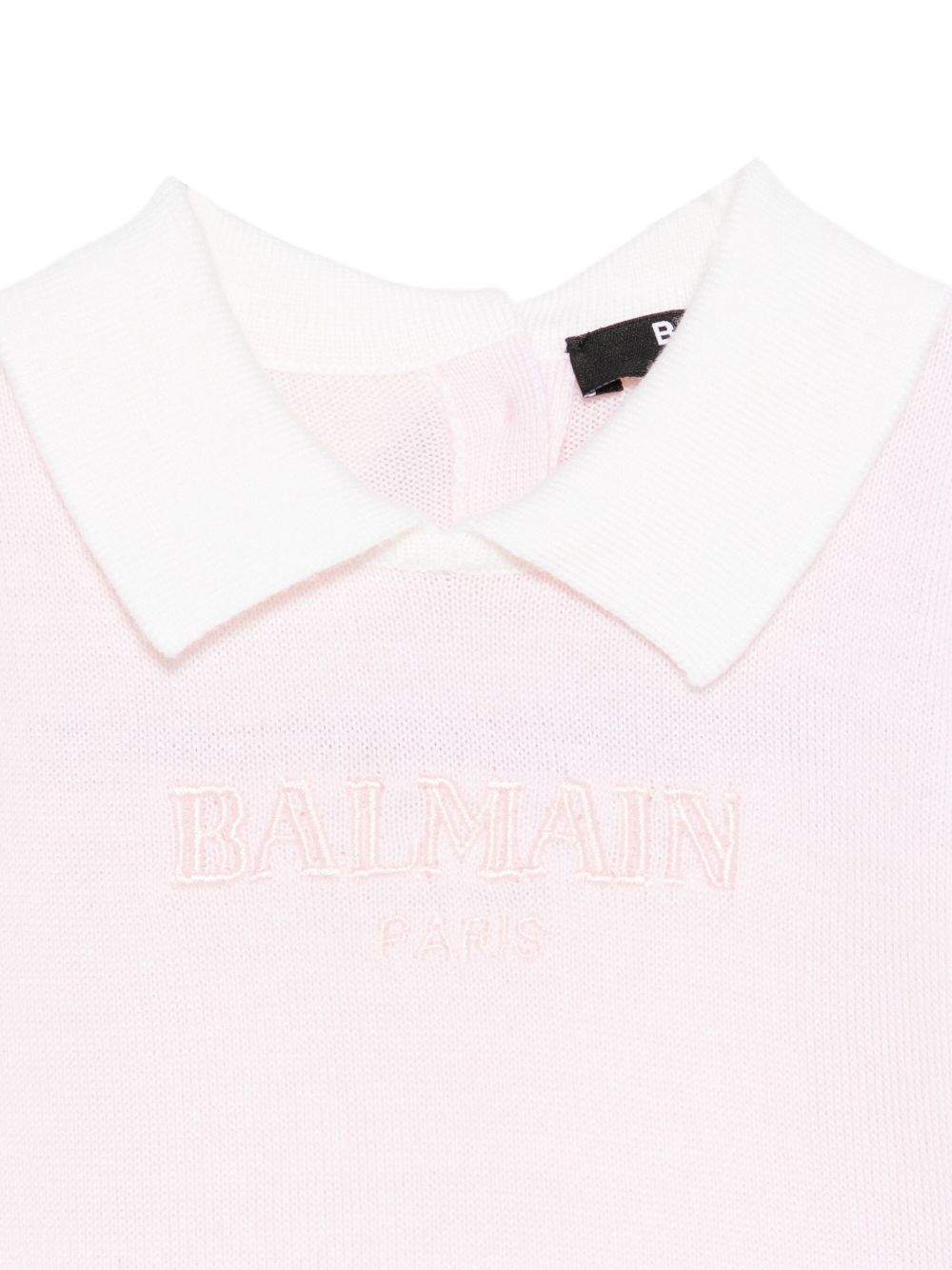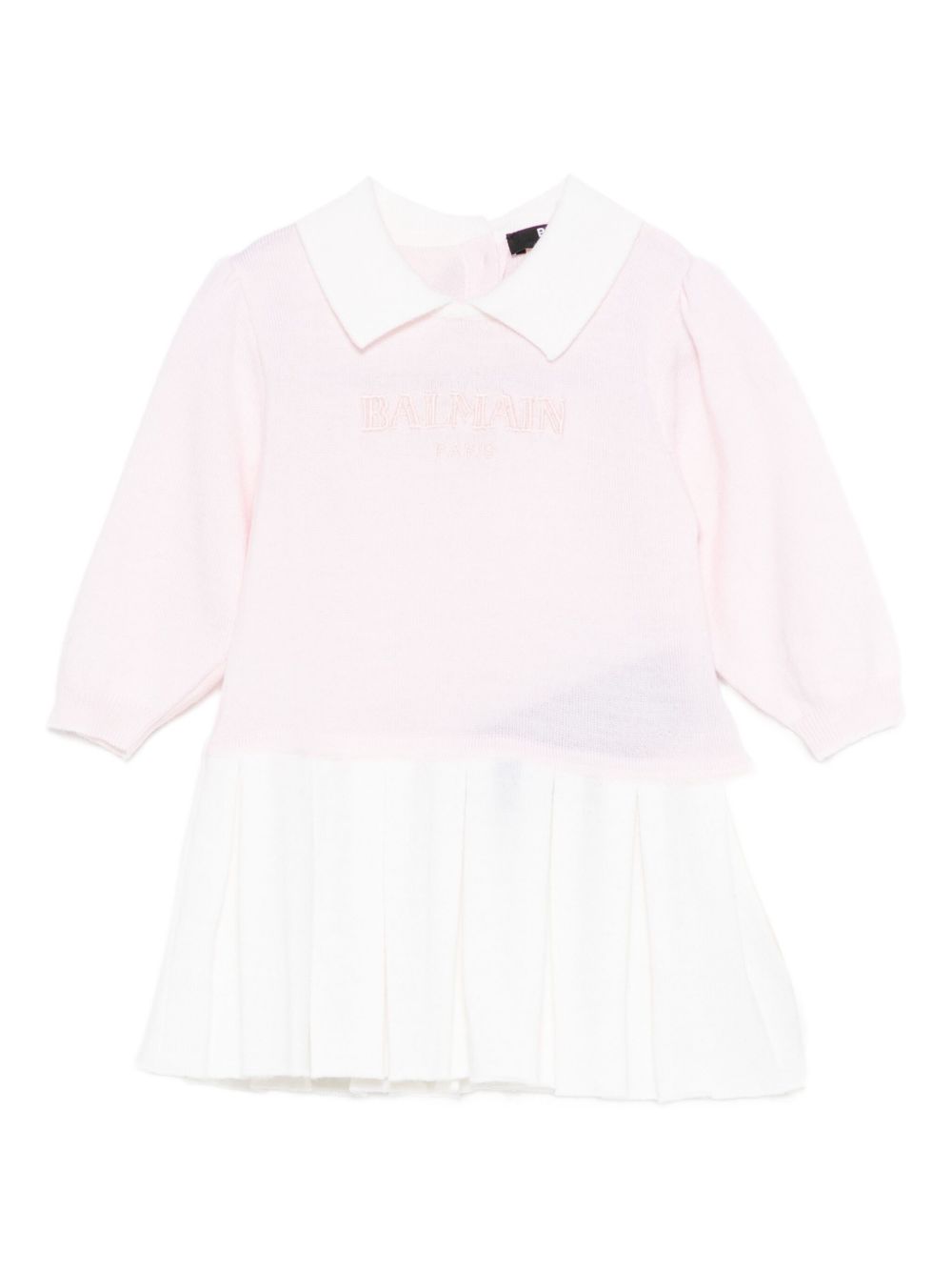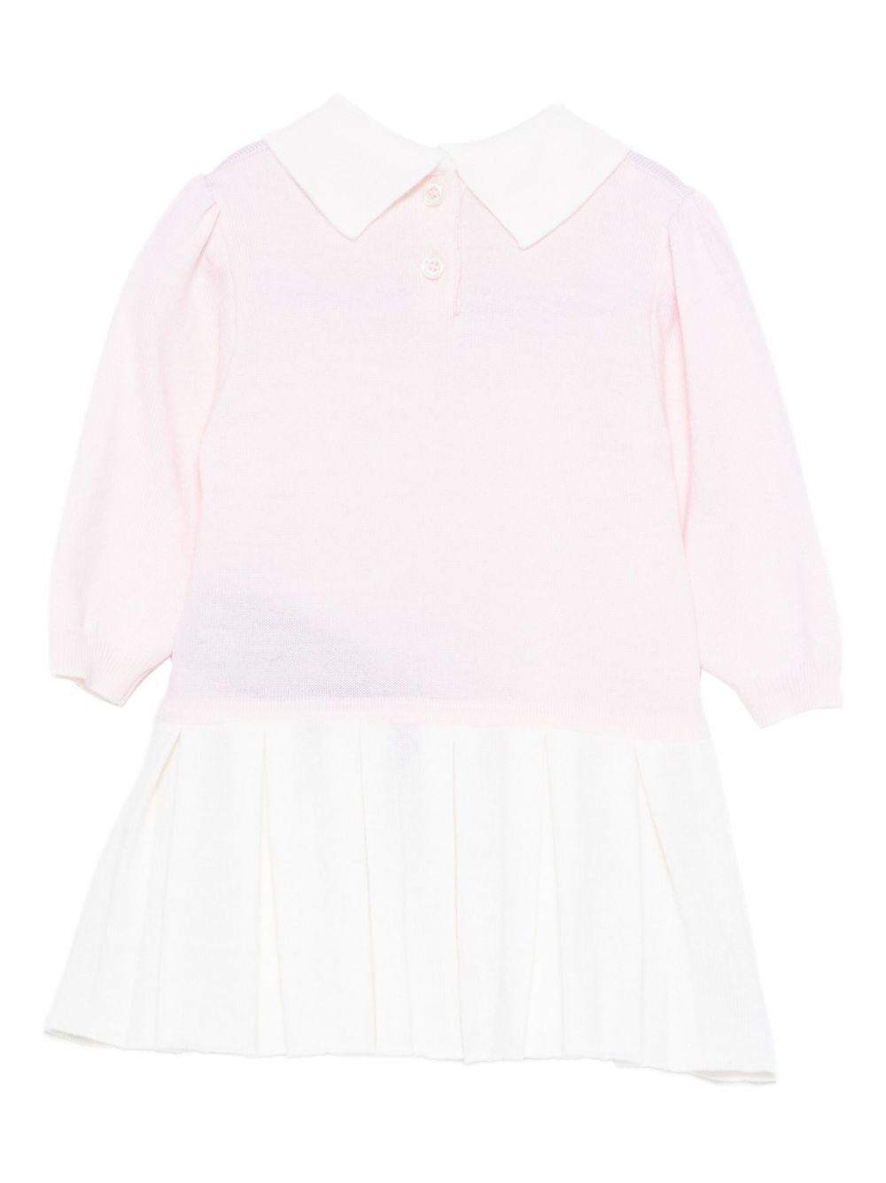 Abito con logo manica lunga con colletto, logo ricamato sul davanti e gonna bianca a plisse.