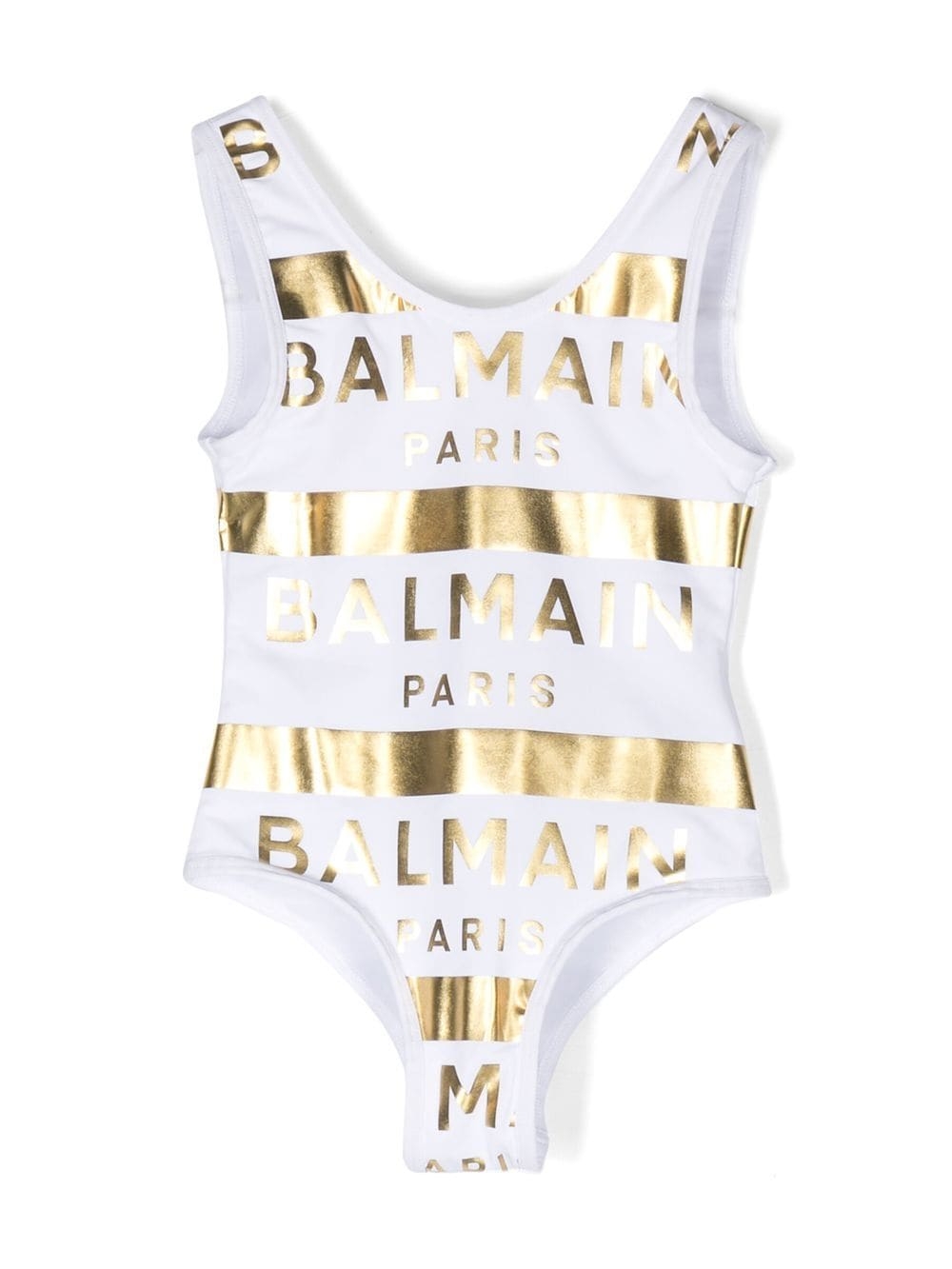 Costume intero bianco con logo oro.