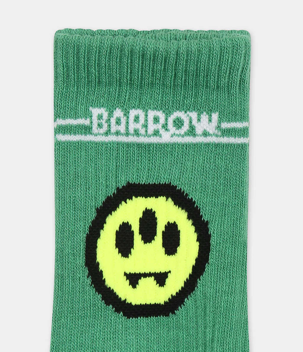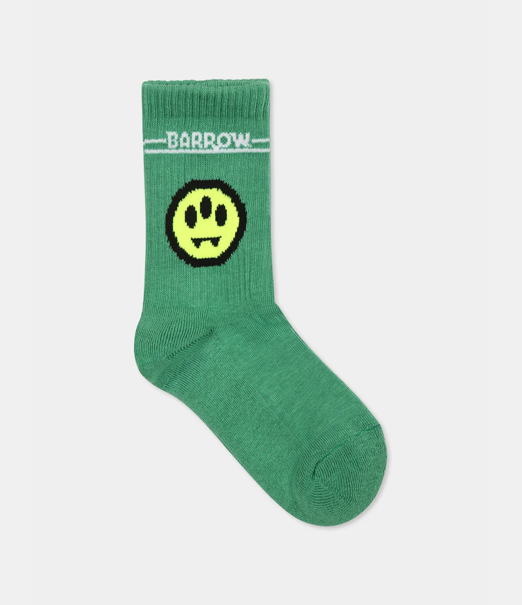 Calze verde in spugna, con gambale a costine; decorate con iconico smile e logo sui lati. Made in Italy