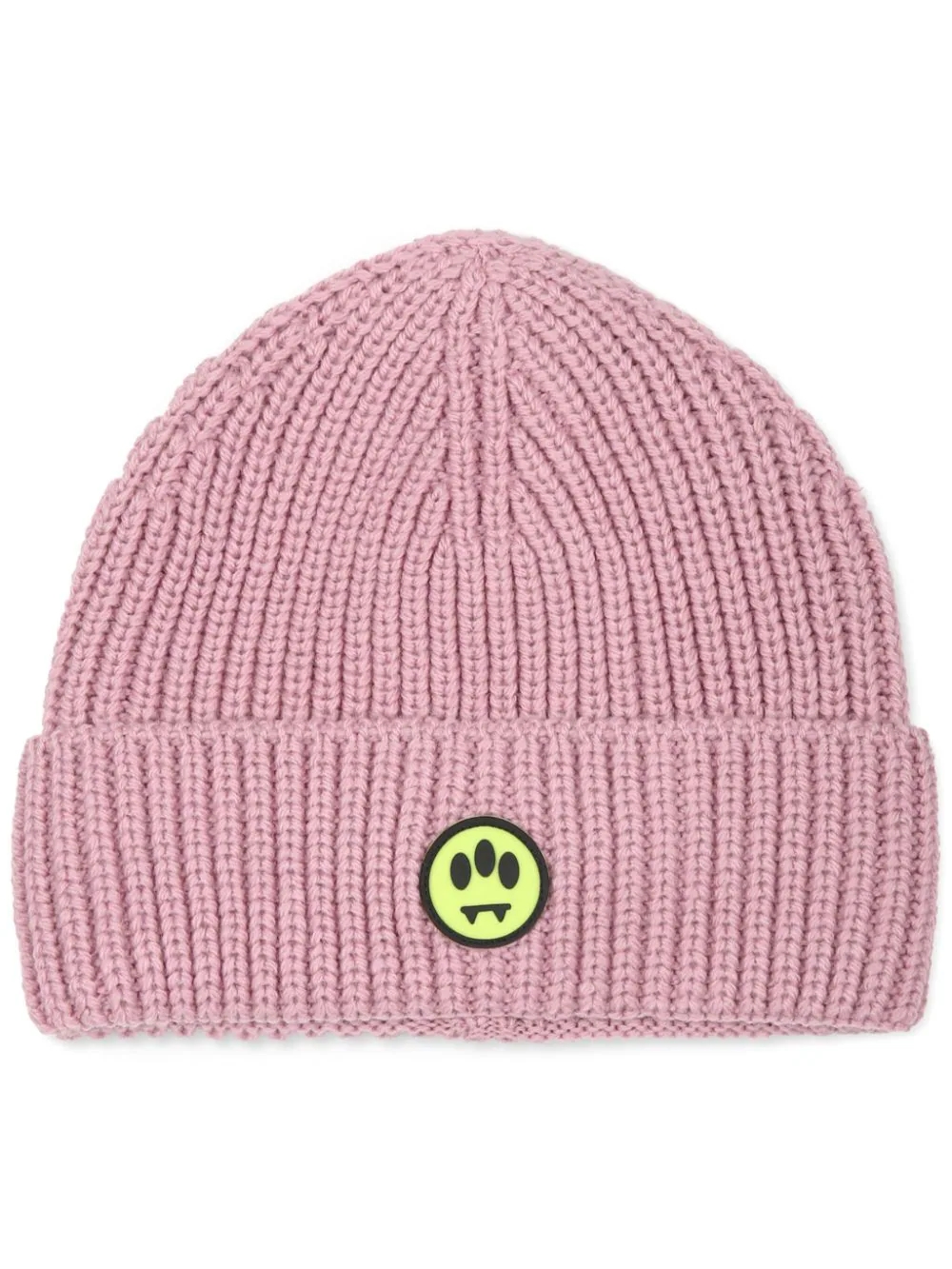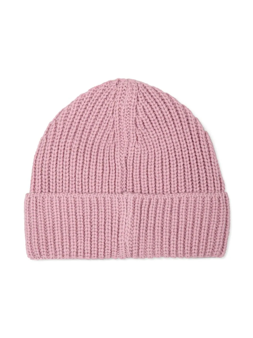 rosa,misto lana,applicazione con logo,lavorazione a coste,orlo con risvolto.