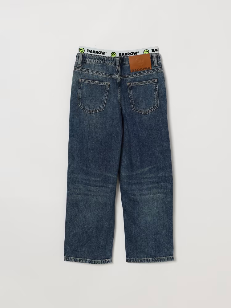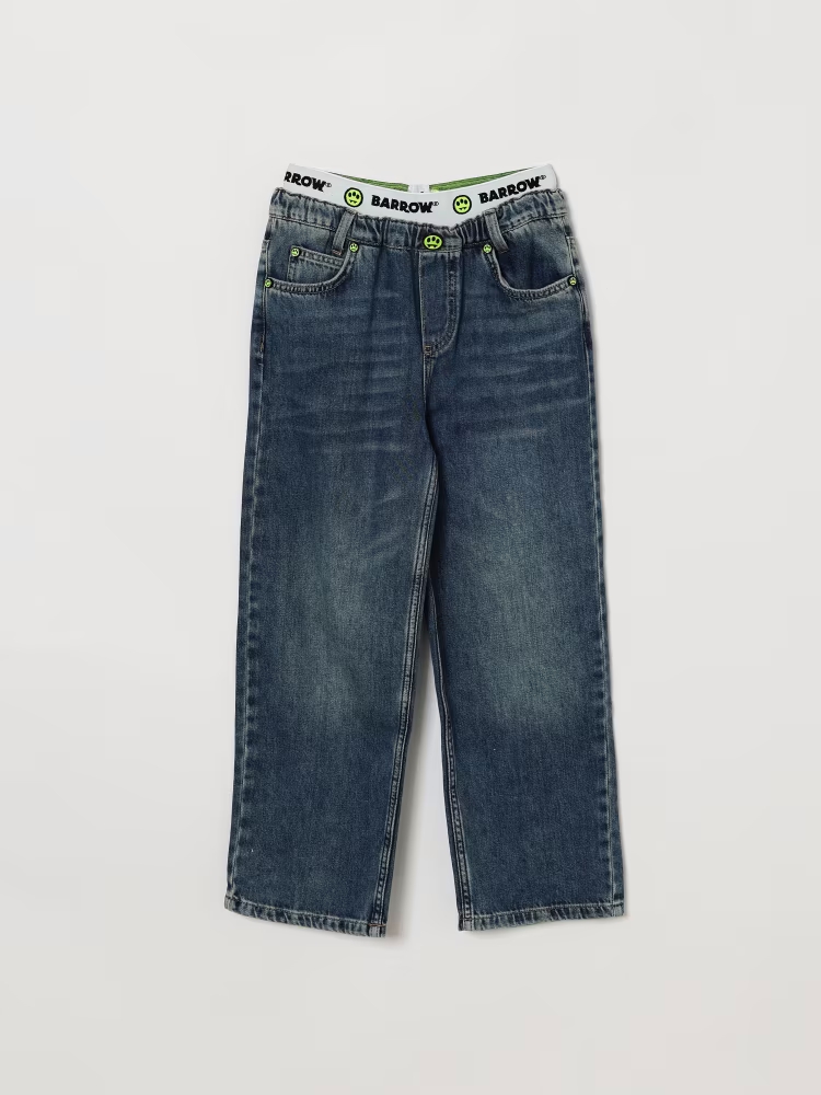 Jeans 5 tasche con passanti, vita elasticizzata con logo, chiusura con bottone e zip