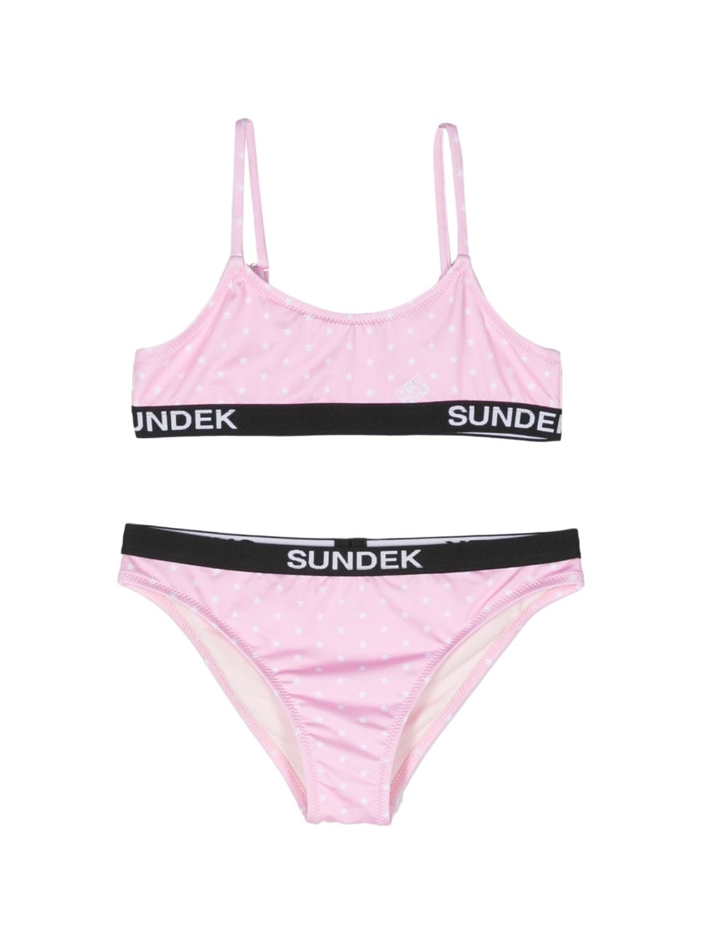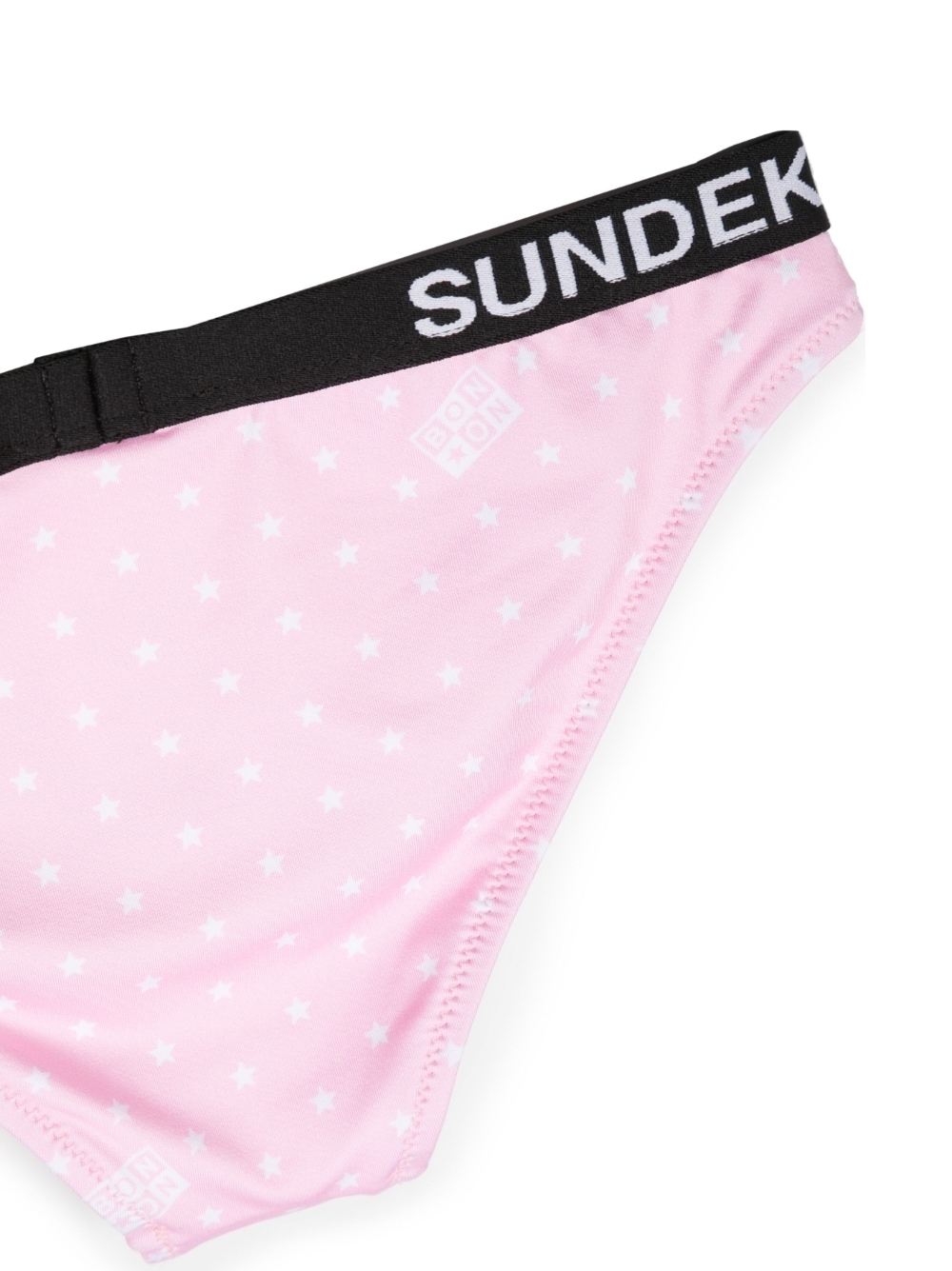 Rosa pastello, design elasticizzato, stampa con stelle, spalline fini regolabili, design a fascia, fascia con logo, design pull on e vita con logo. I costumi da bagno devono essere provati indossando il proprio indumento intimo.