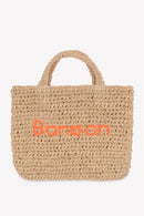 Borsa con logo ricamato in paglia
