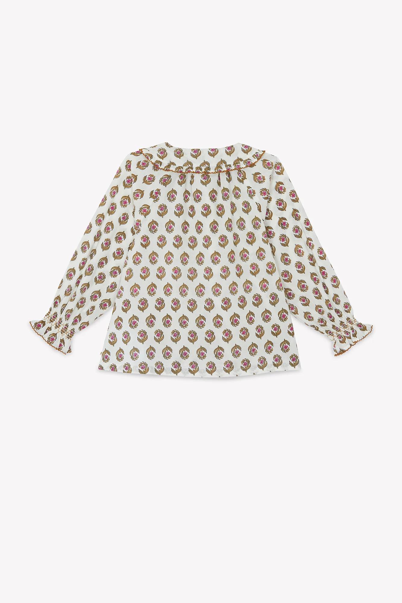 Motivi floreali a stampa a blocchi.- Colletto alla Peter Pan elegante