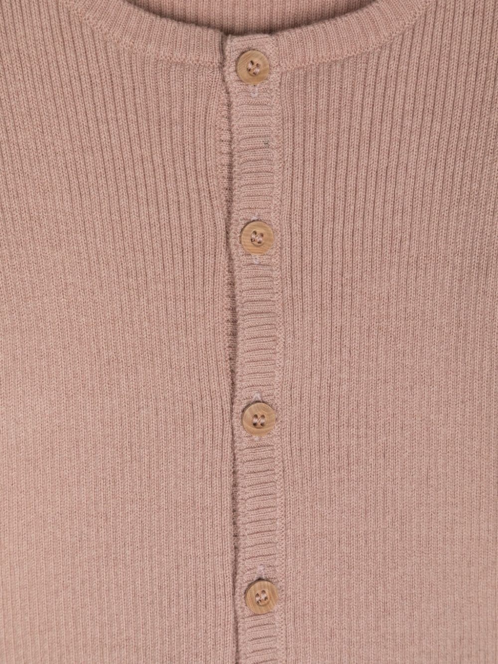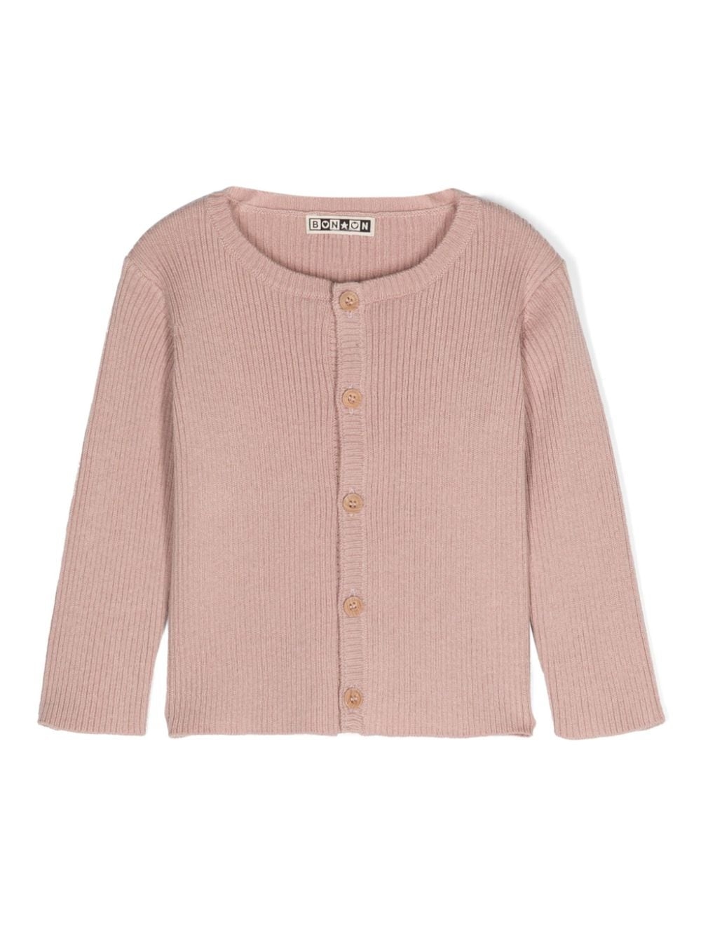 Cardigan a coste con scollo tondo, misto lana-cotone, chiusura frontale con bottoni, maniche lunghe, orlo dritto