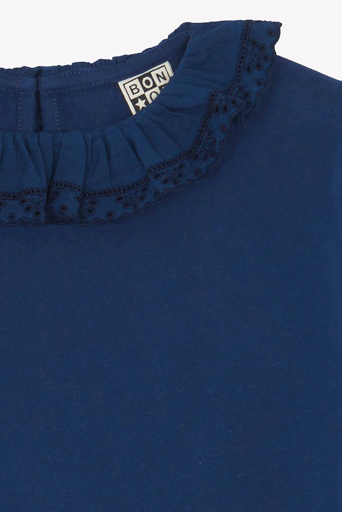 T-shirt con ricamo sul colletto, manica lunga con elastico ai polsini e abbottonatura sul retro con bottoni