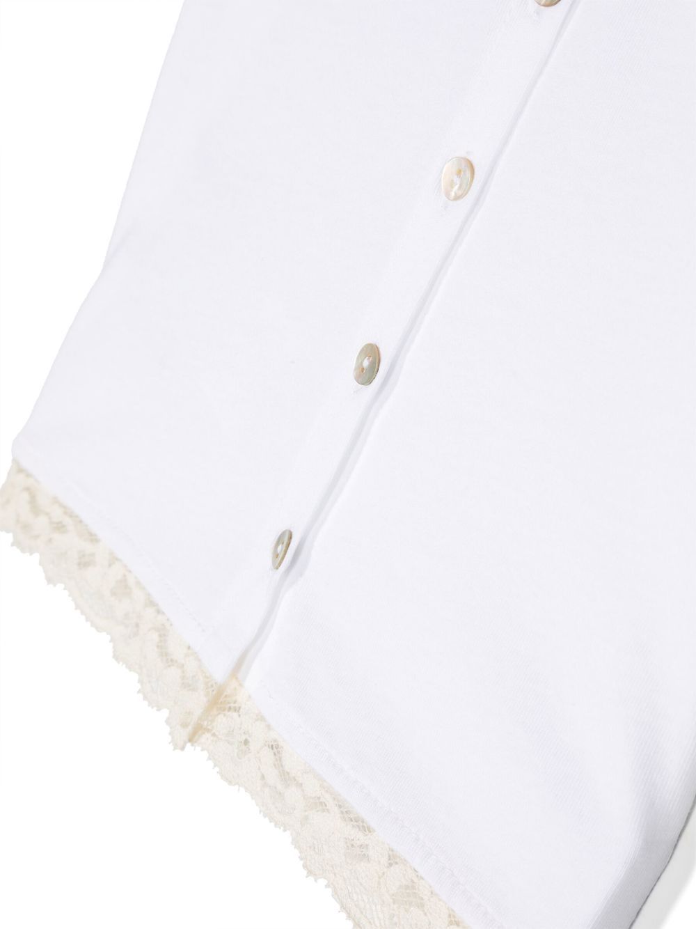 T-shirt girocollo in cotone con orlo in pizzo e chiusura con bottoni sul retro