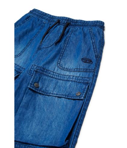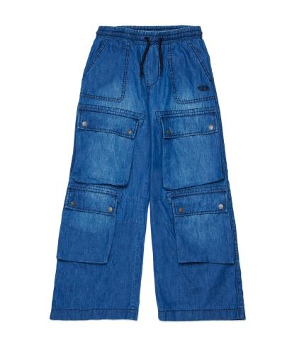cintura elasticizzata blu, tasche con bottoni, tasche posteriori