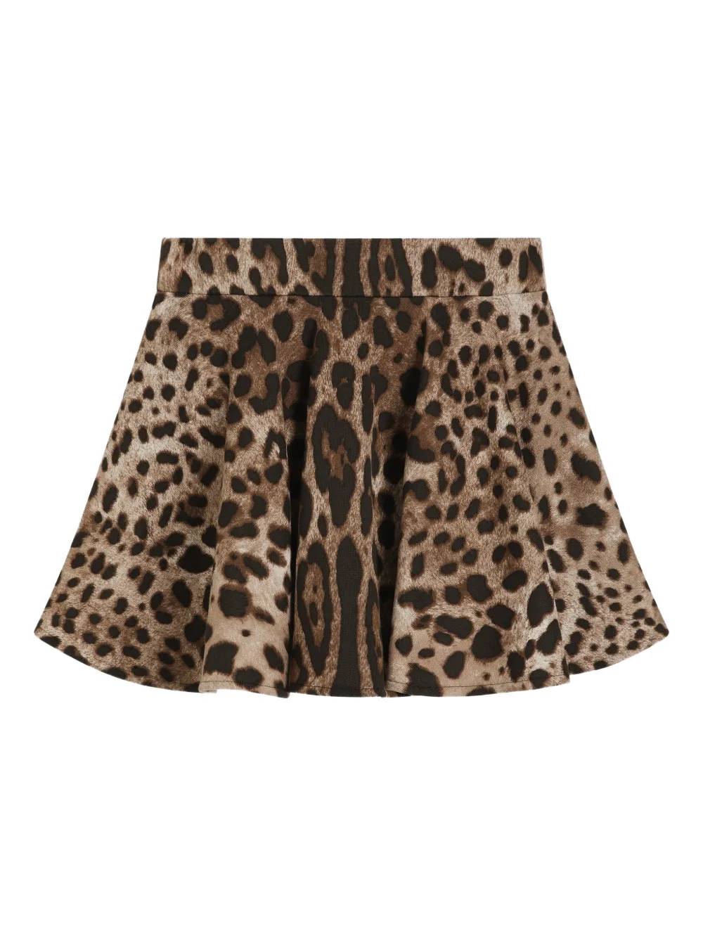Gonna con stampa realizzata in cotone garzato, con vita elasticizzata; è decorata con stampa animalier all-over e logo DG ricamato sulla parte anteriore.