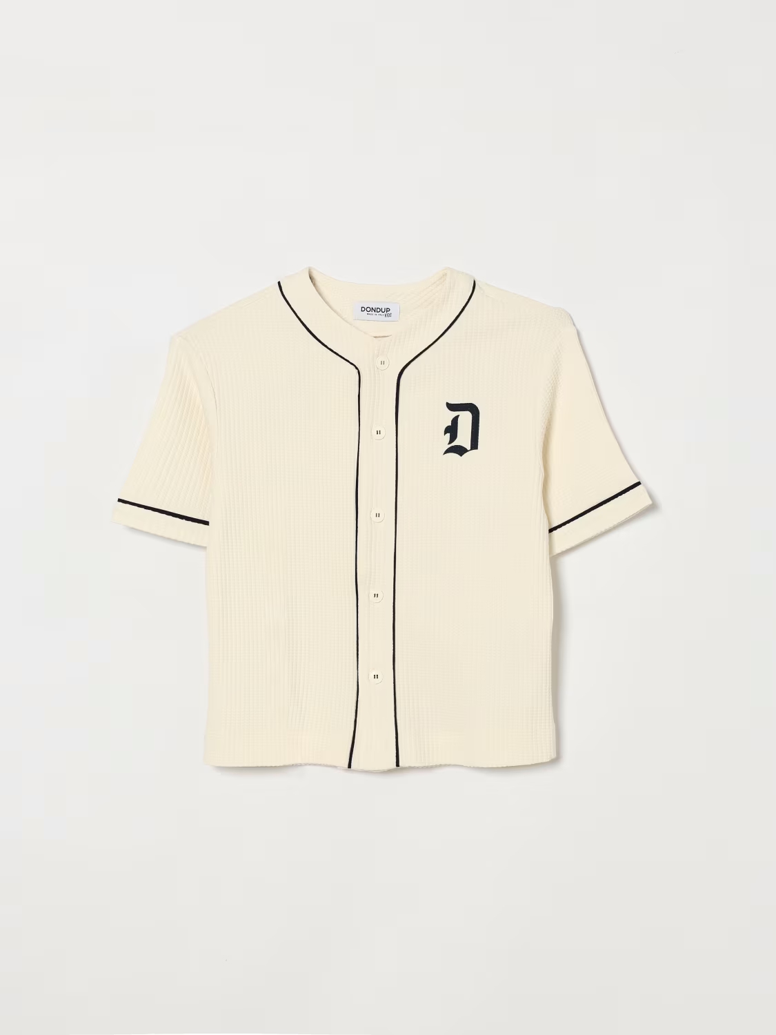 Camicia in cotone a maniche corte con logo e rifiniture a contrasto
