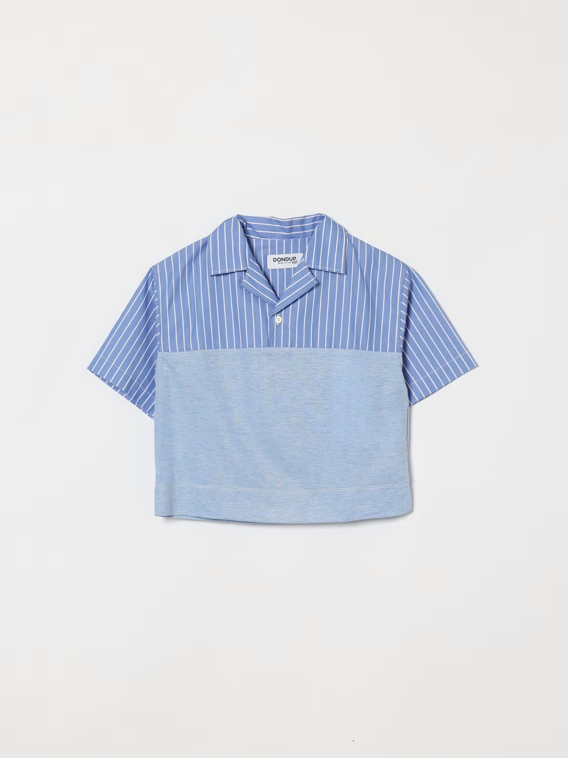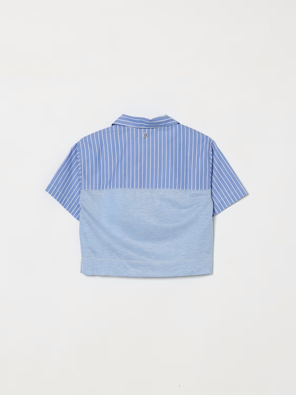 T-shirt a maniche corte con colletto a camicia e logo applicato sulla parte posteriore