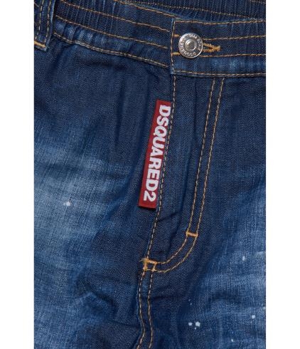 Indaco, denim, targhetta con logo, dettaglio effetto vernice, chiusura con bottone e zip nascosta, due tasche con inserti, due tasche laterali con patta, due tasche posteriori a filetto, orli alle caviglie elasticizzati, gamba ampia, passanti e orlo dritto.