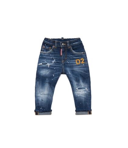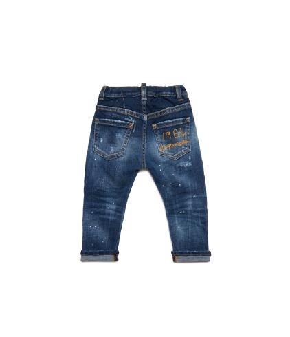 Jeans con effetto vissuto Blu navy, denim, rifinitura con effetto vissuto, passanti, cuciture a contrasto, motivo con ricamo, chiusura con bottoni e design classico a cinque tasche.