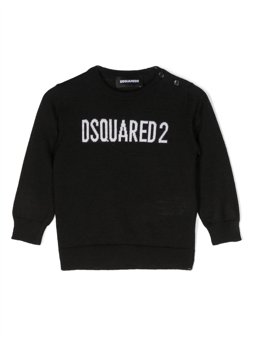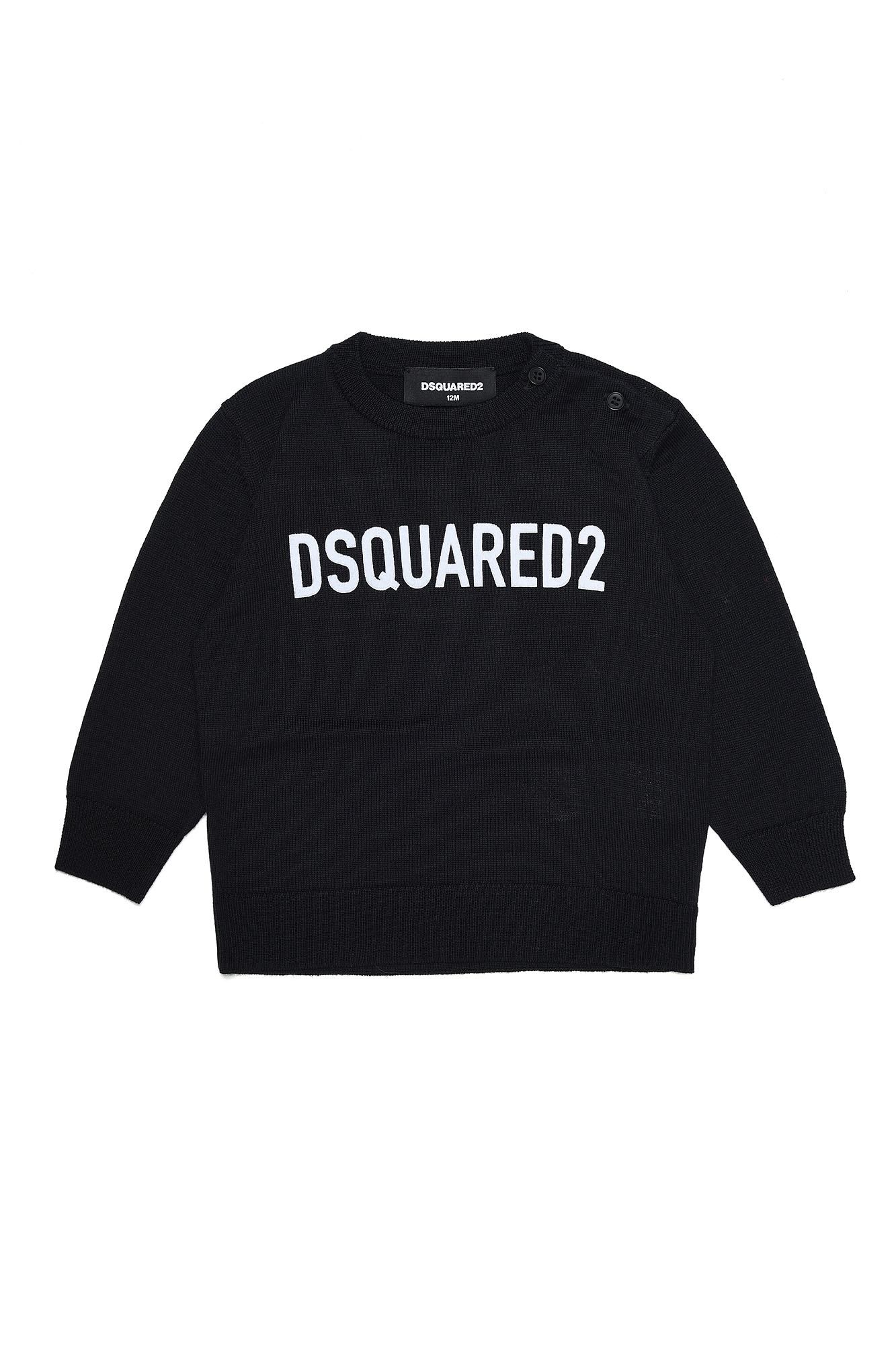 Nero, logo intarsiato, scollo rotondo e maniche lunghe. Gli articoli unisex utilizzano taglie da uomo.