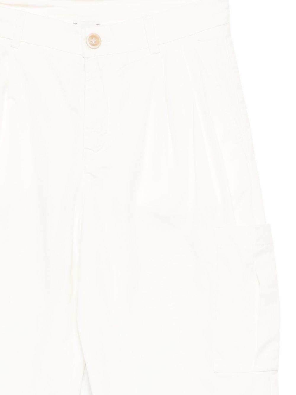 Chiusura con bottoni color crema Passanti per cintura Tasca cargo laterale Plissettatura frontale