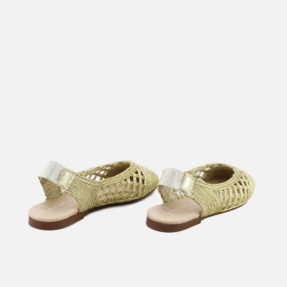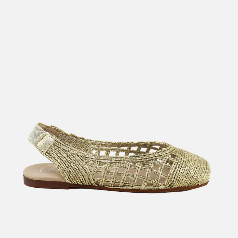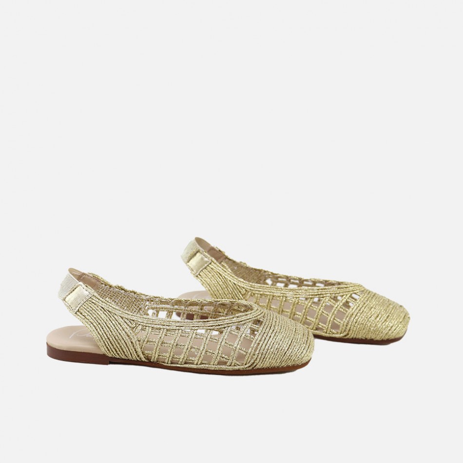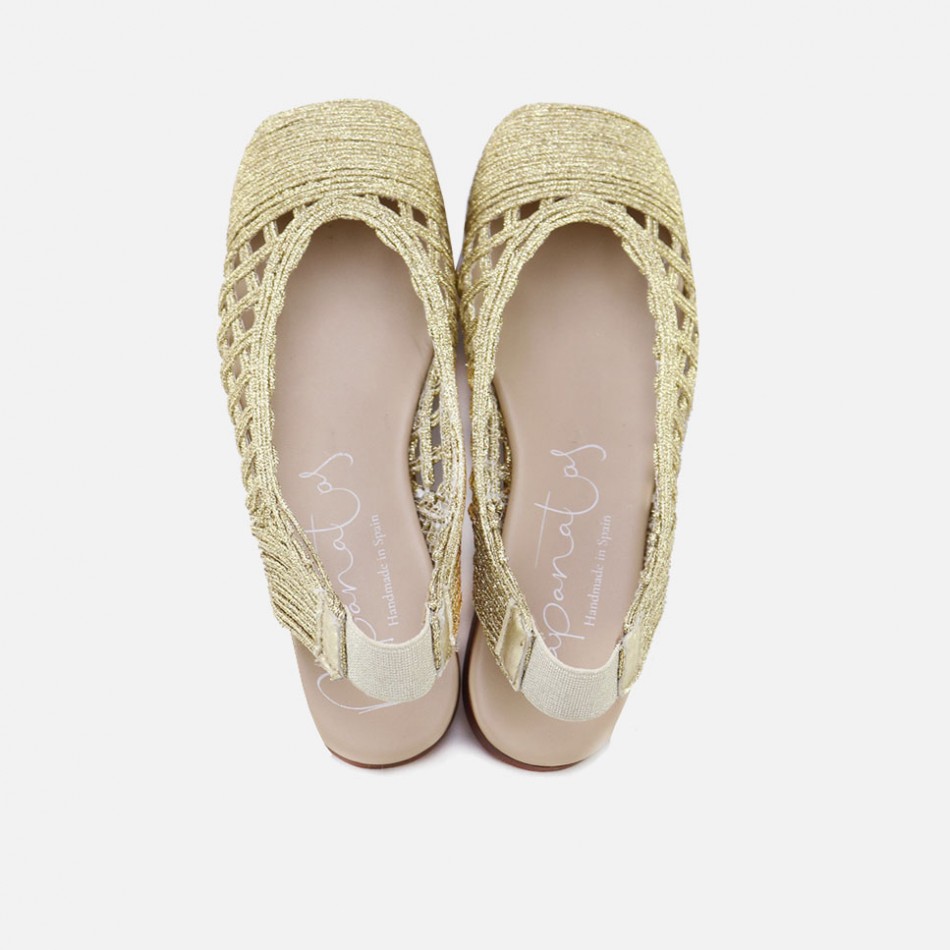 Ballerine traforate oro. Aperta dietro. Suola antiscivolo. Produzione artigianale.