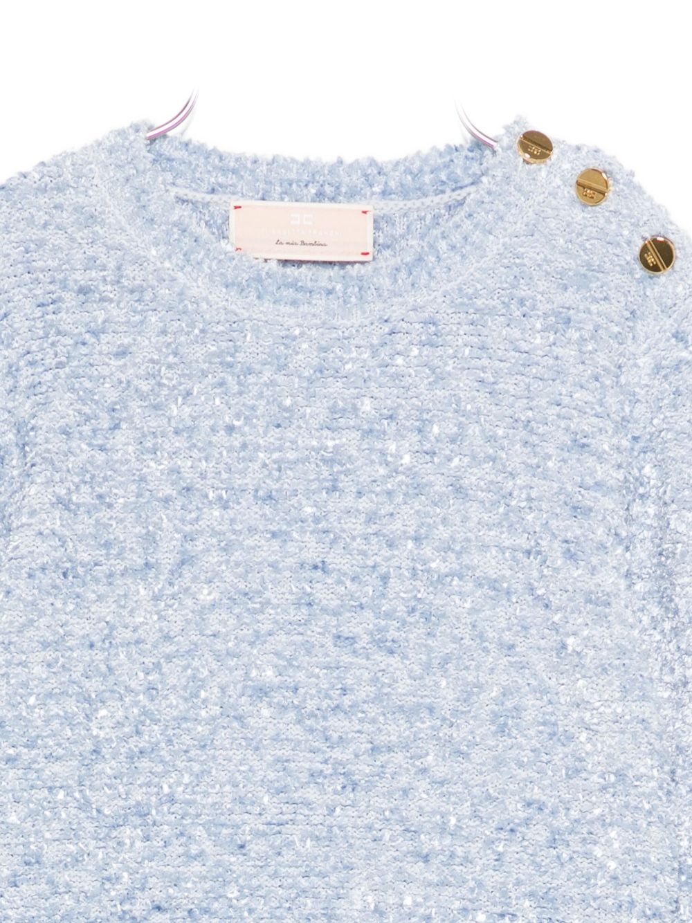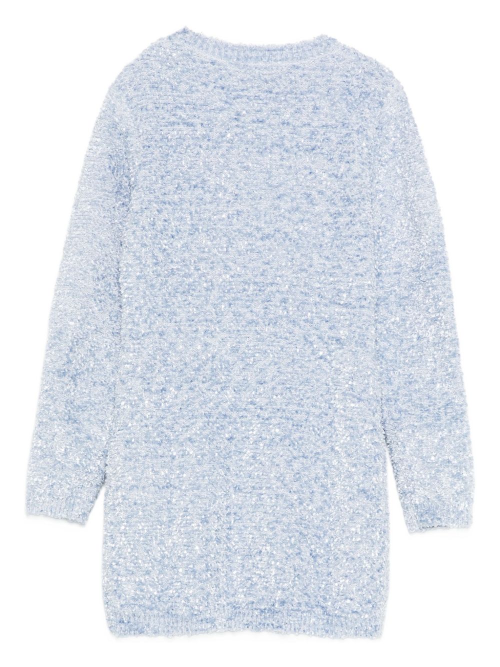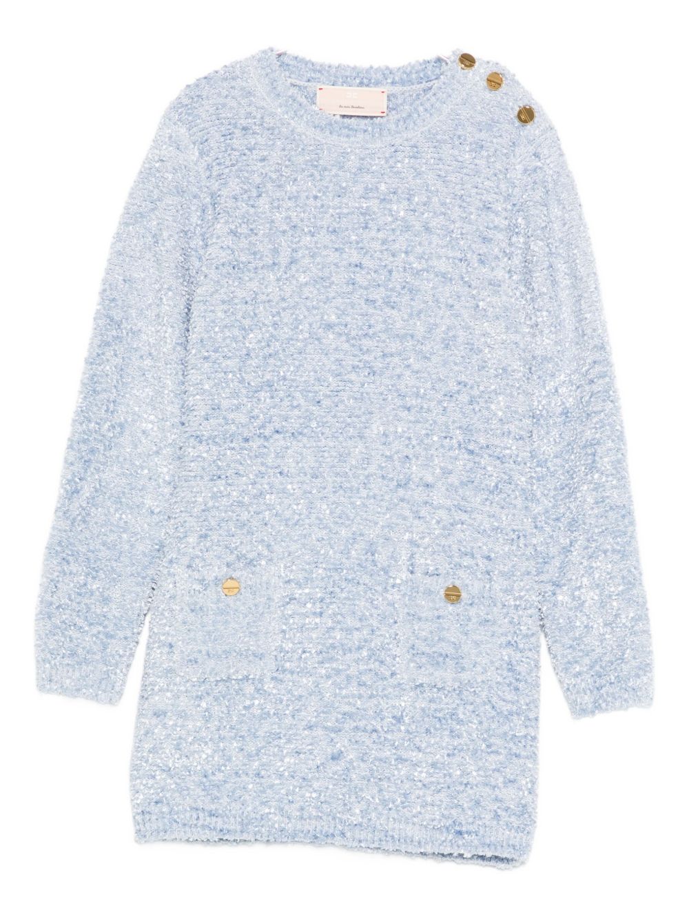 Abito in maglia blu chiaro effetto mélange chiusura con bottoni scollo rotondo maniche lunghe tasche a toppa