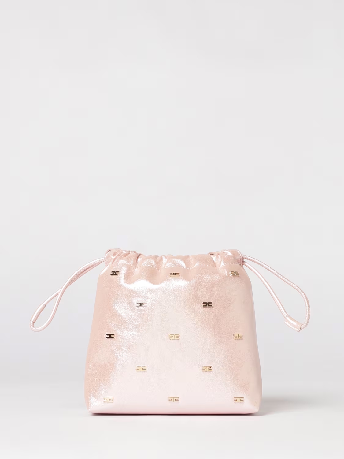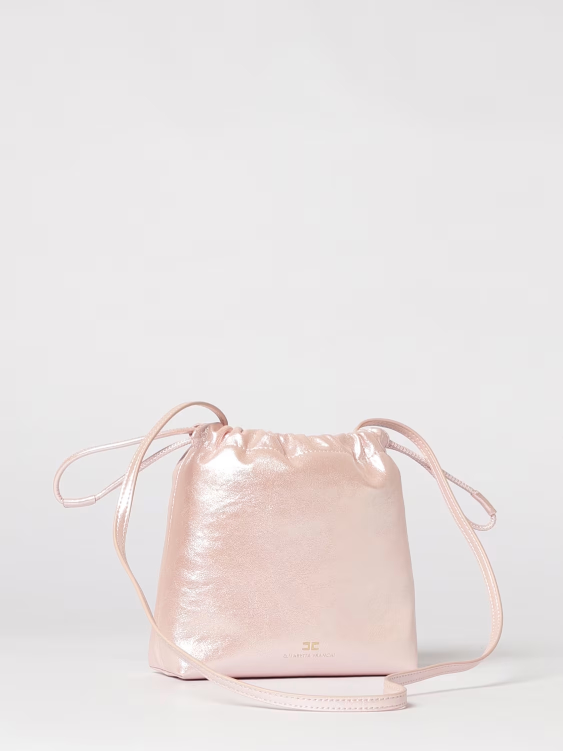 Borsa in ecopelle con logo in metallo, tasca interna con zip, modello a secchiello, chiusura con coulisse, tracolla sottile