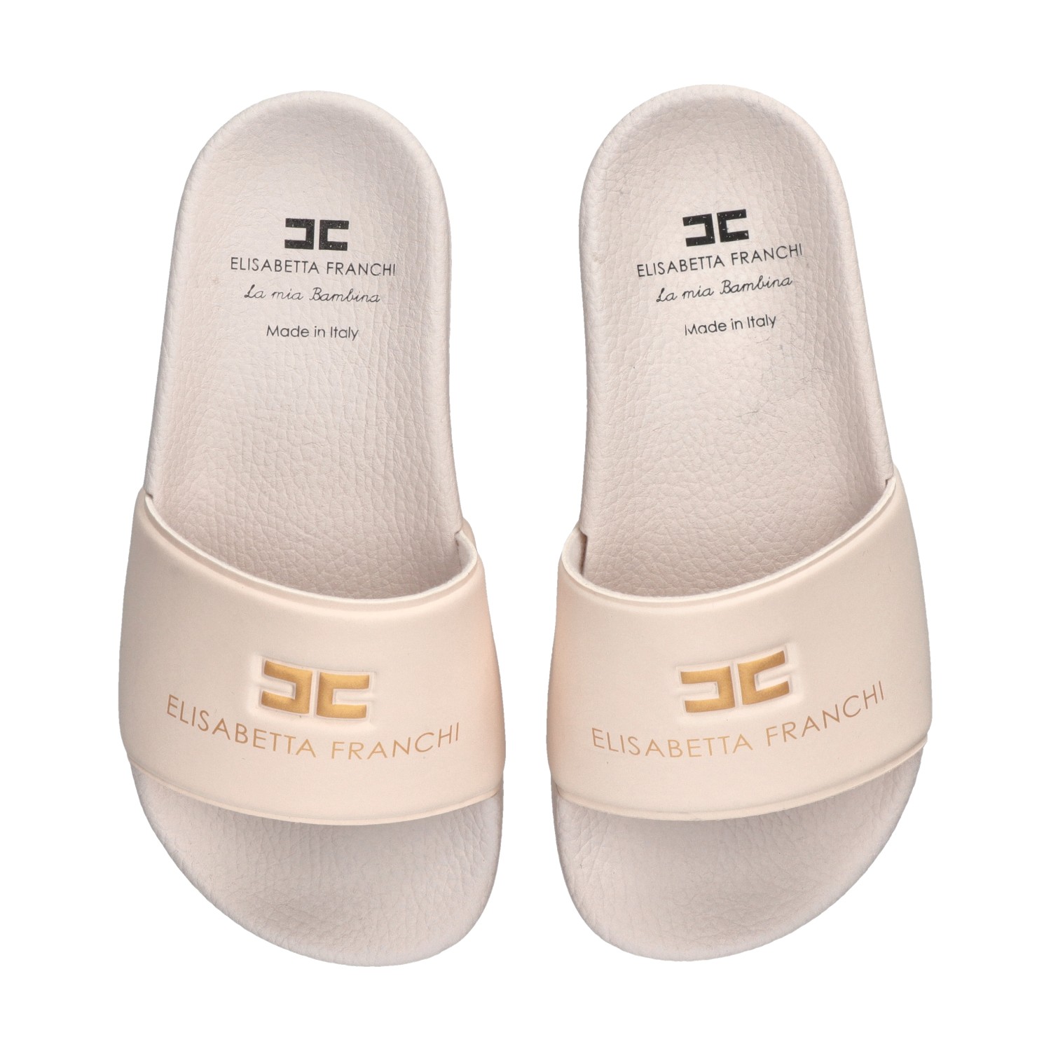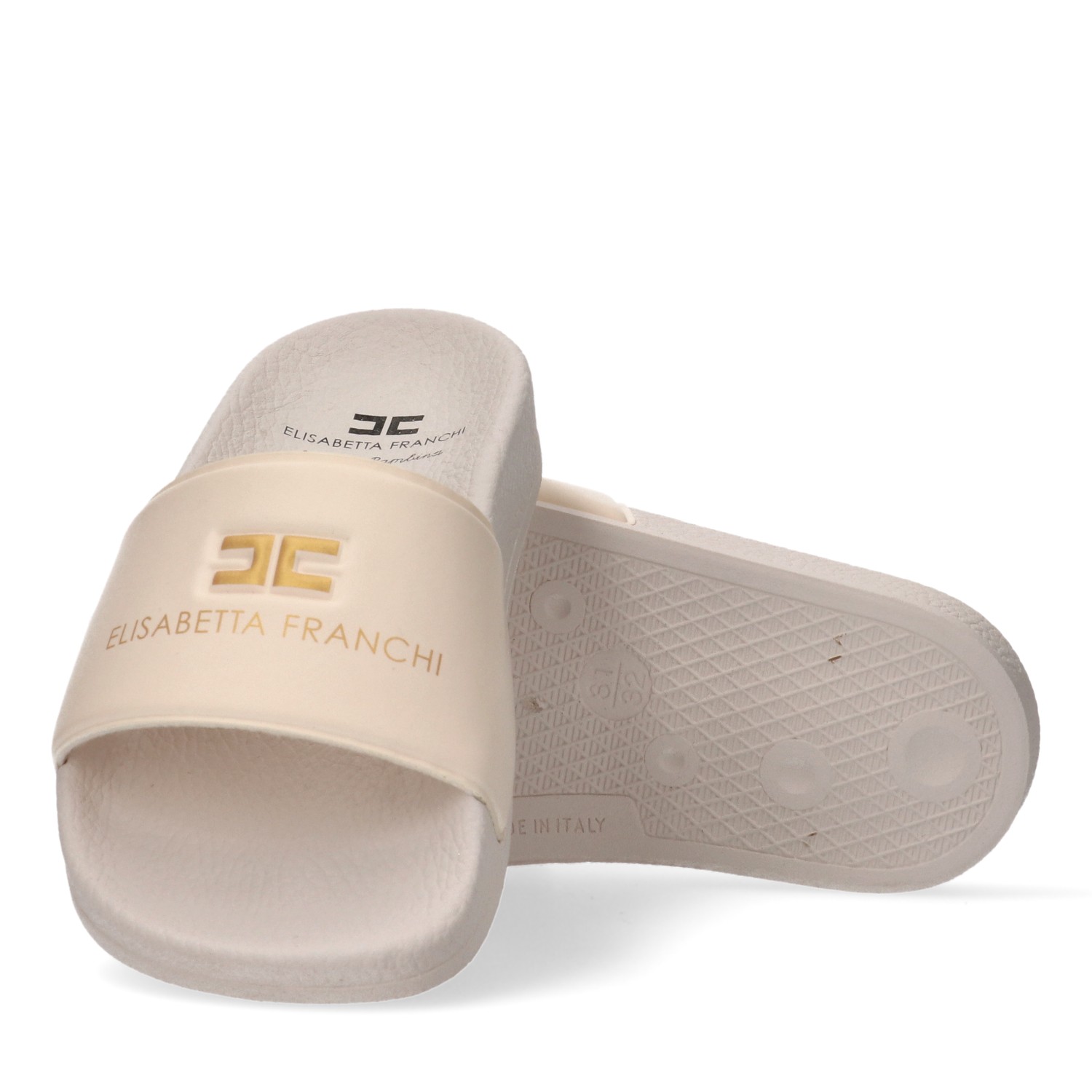 Ciabatta panna in gomma con logo oro sul davanti