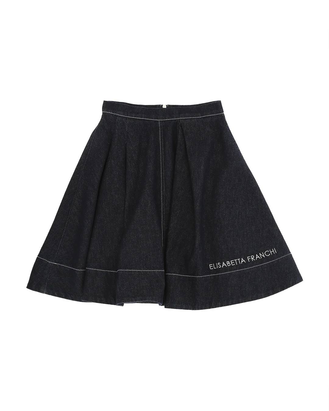 Gonna in denim con Logo ricamato
