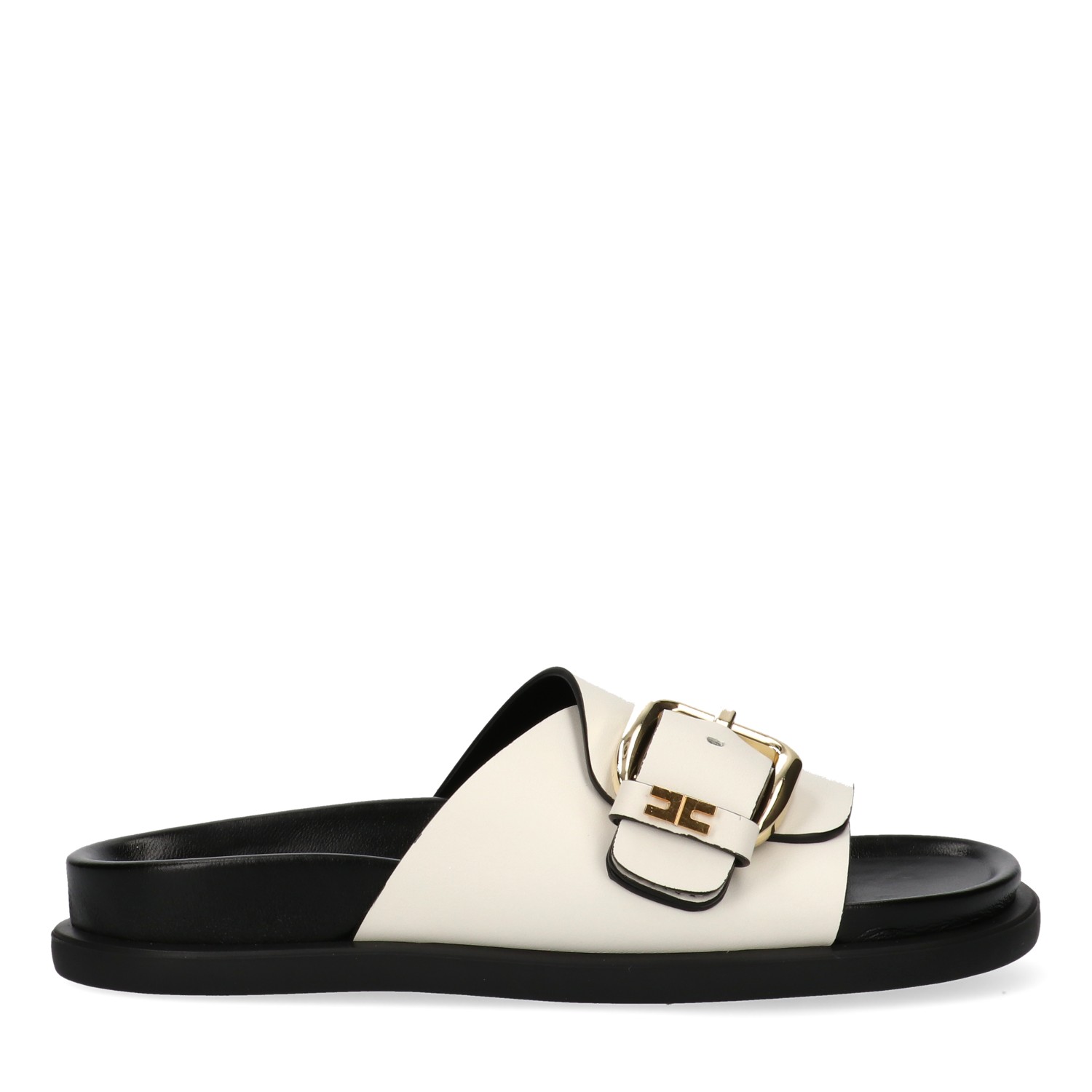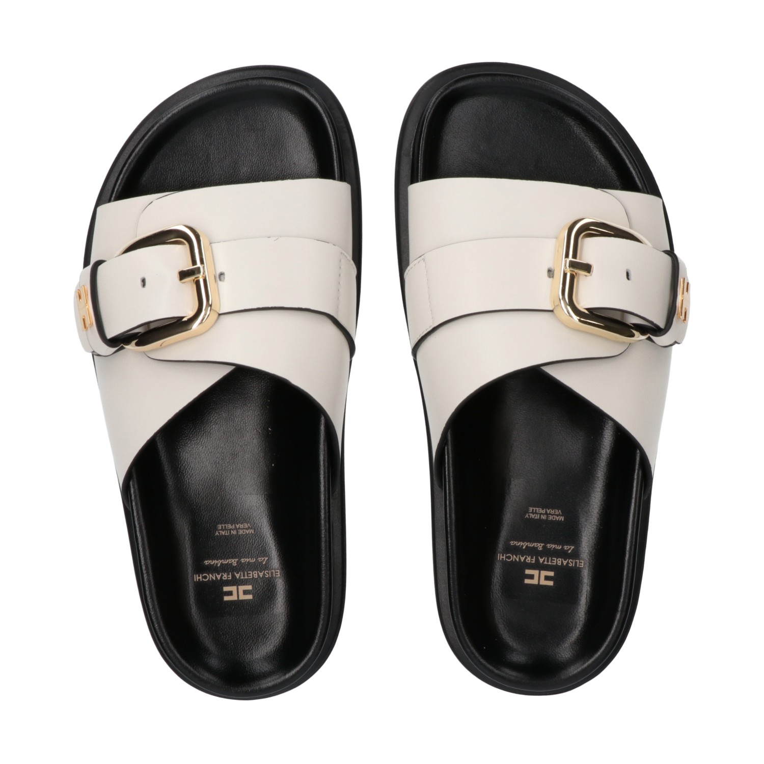 Sandalo panna con logo sulla fibbia