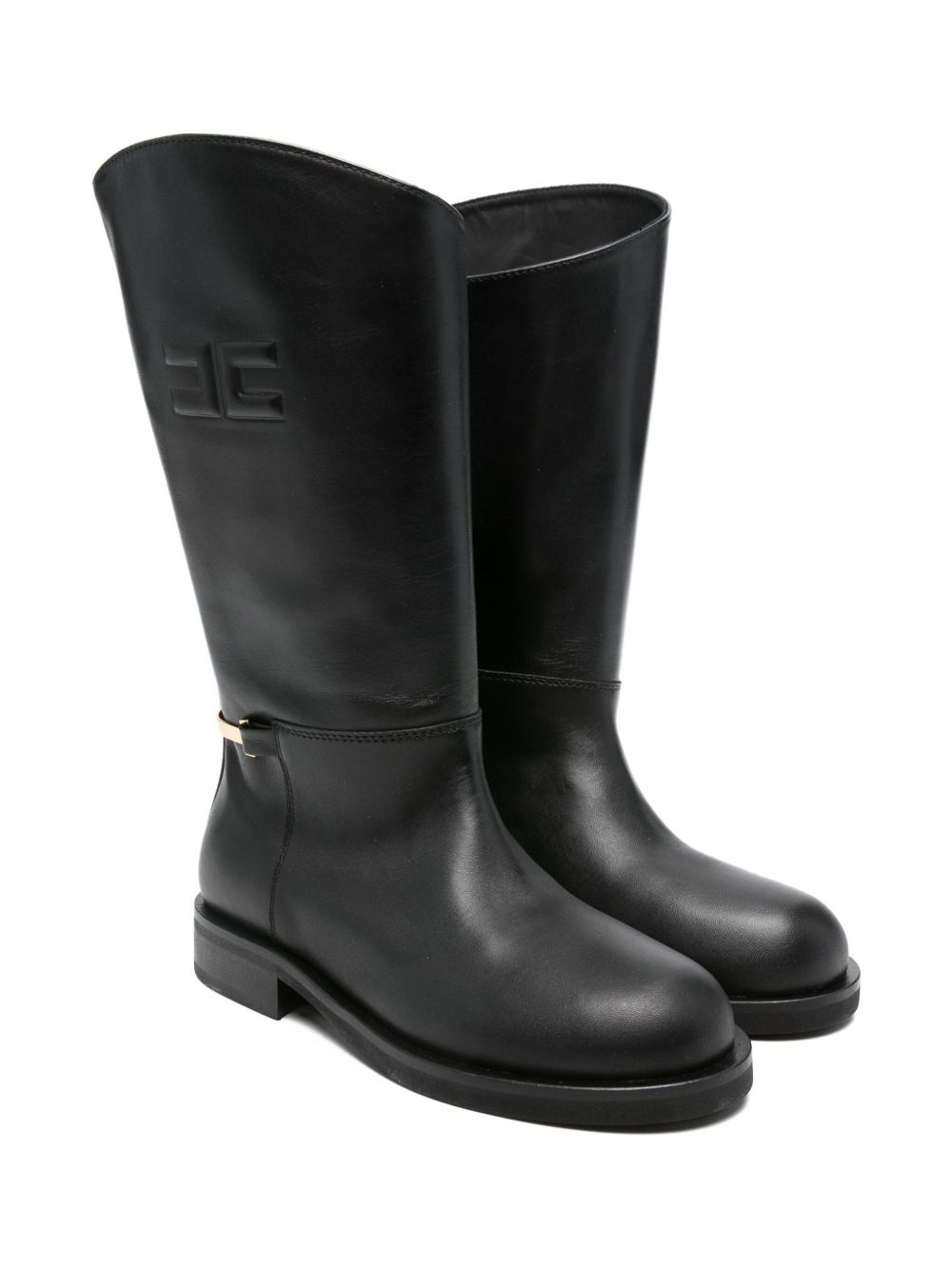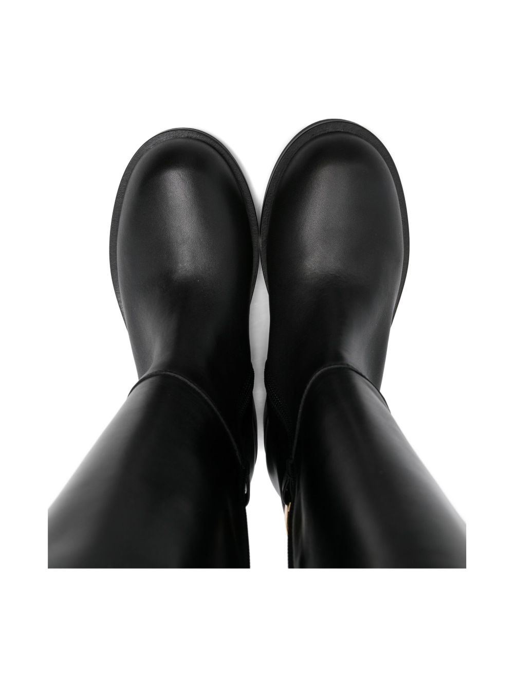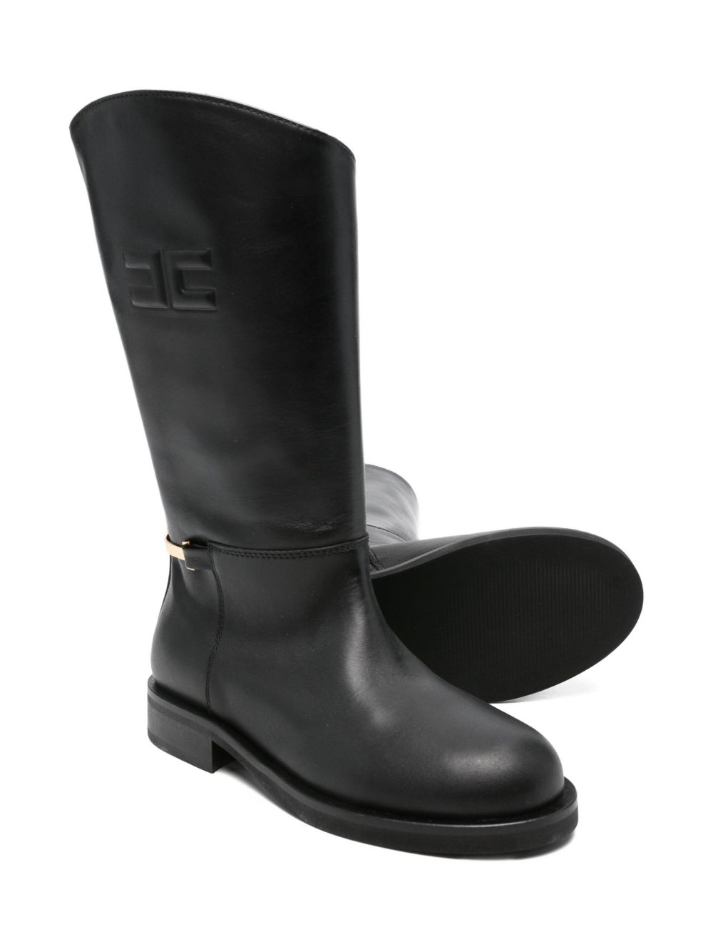 stivali in pelle con logo in rilievopelle nera con logo in rilievo, fibbia in tonalità oro, punta rotonda