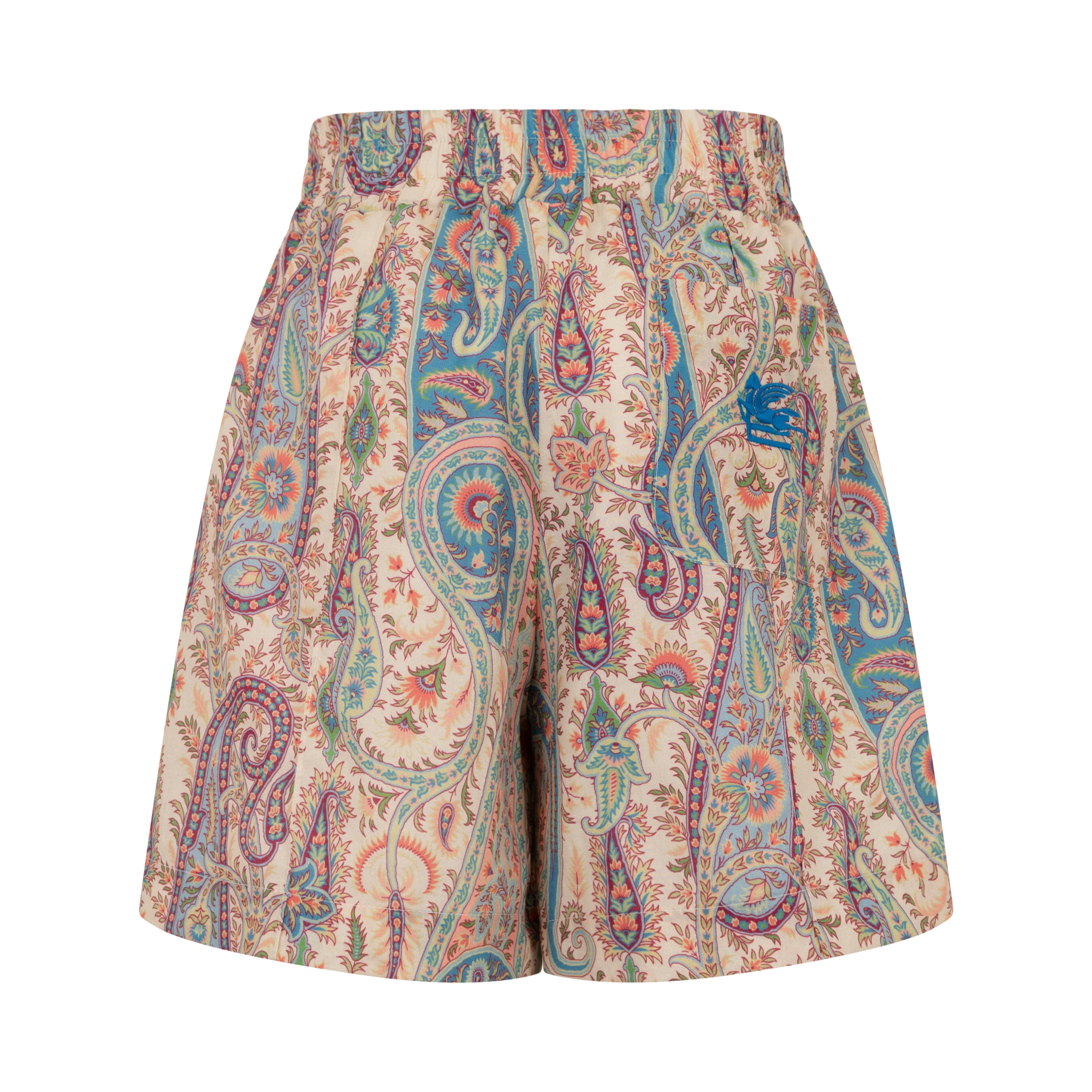 Bermuda realizzati in mussola di puro cotone e contraddistinti da una stampa con Paisley all over. Il modello è completato da una tasca applicata sul retro con logo Pegaso e monogram ETRO ricamati.