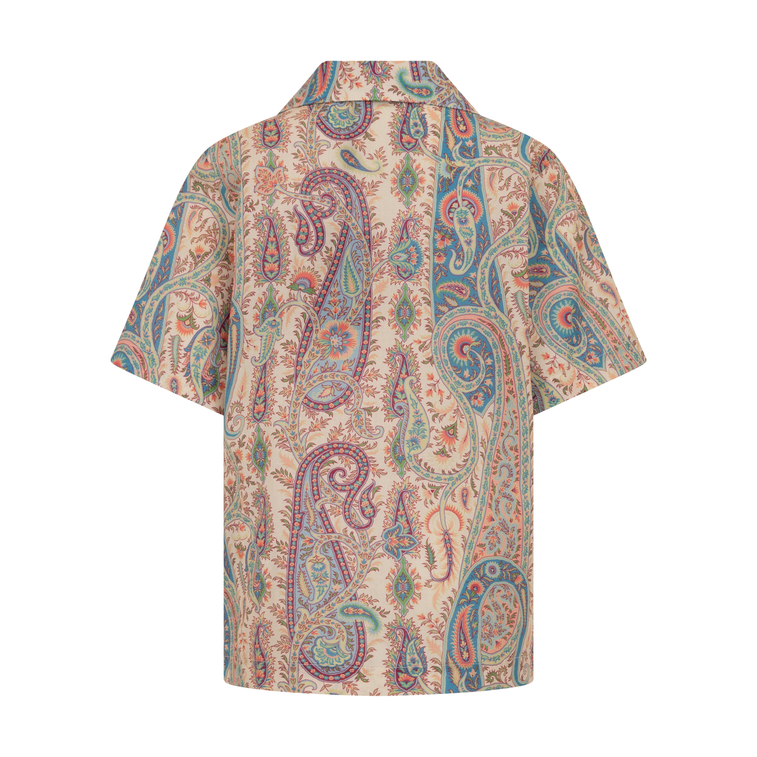 Camicia a maniche corte realizzata in mussola di puro cotone e caratterizzata da una stampa con Paisley all over. Il modello è completato da una tasca sul petto con logo Pegaso e monogram ETRO ricamati.