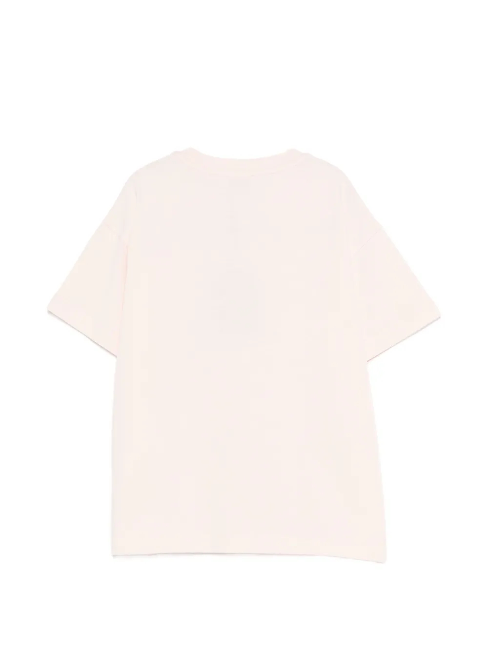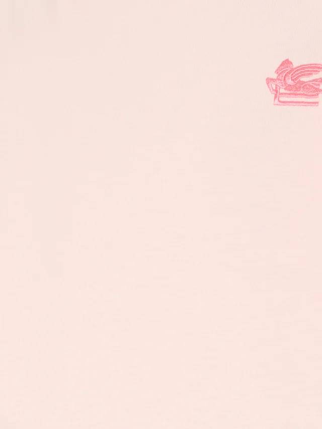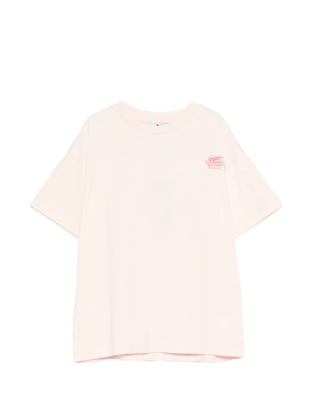 T-shirt rosa realizzata in jersey di cotone, con maniche core e girocollo a costine. È decorata con logo e Pegaso ricamati, sul petto.