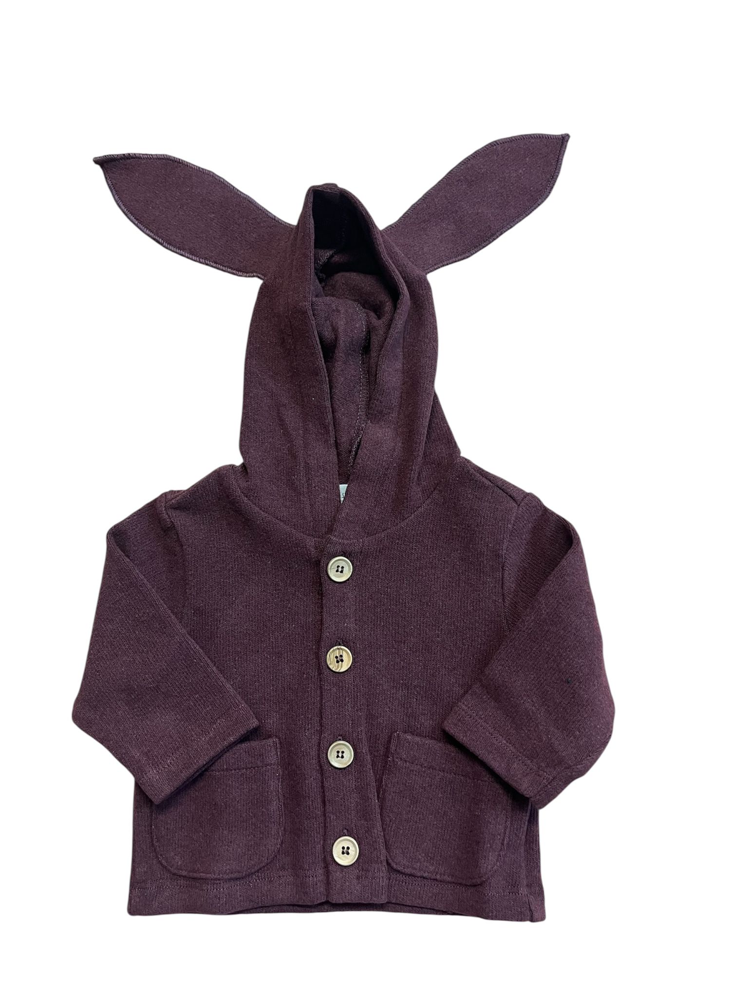 Felpa con cappuccio con le orecchie. Chiusura con bottoni , color bordeaux