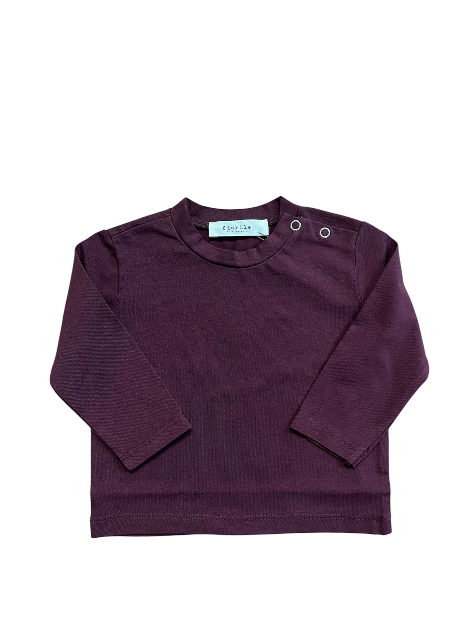 T-shirt maniche lunghecolor bordeaux chiusura con bottoncini sulle spalle