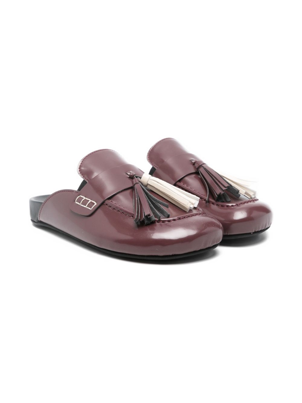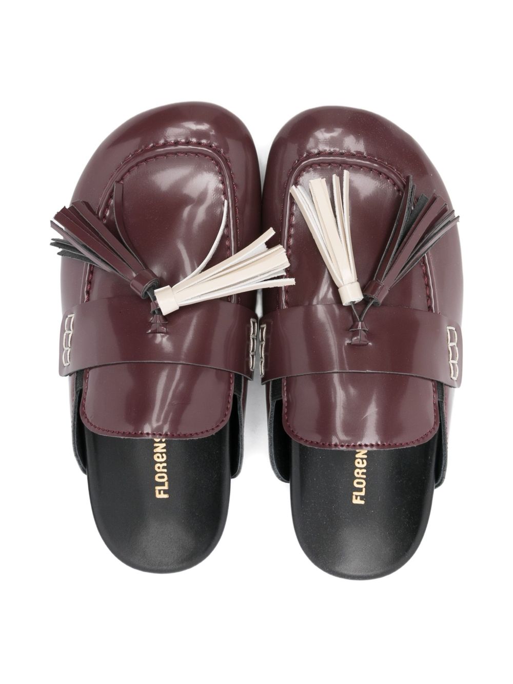 Sabot con nappecaratteristichebordeauxdettaglio nappa punta tondaComposizioneEsterno: pelle di vitello 100%Fodera: tessuto 100%Suola: tessuto 100%