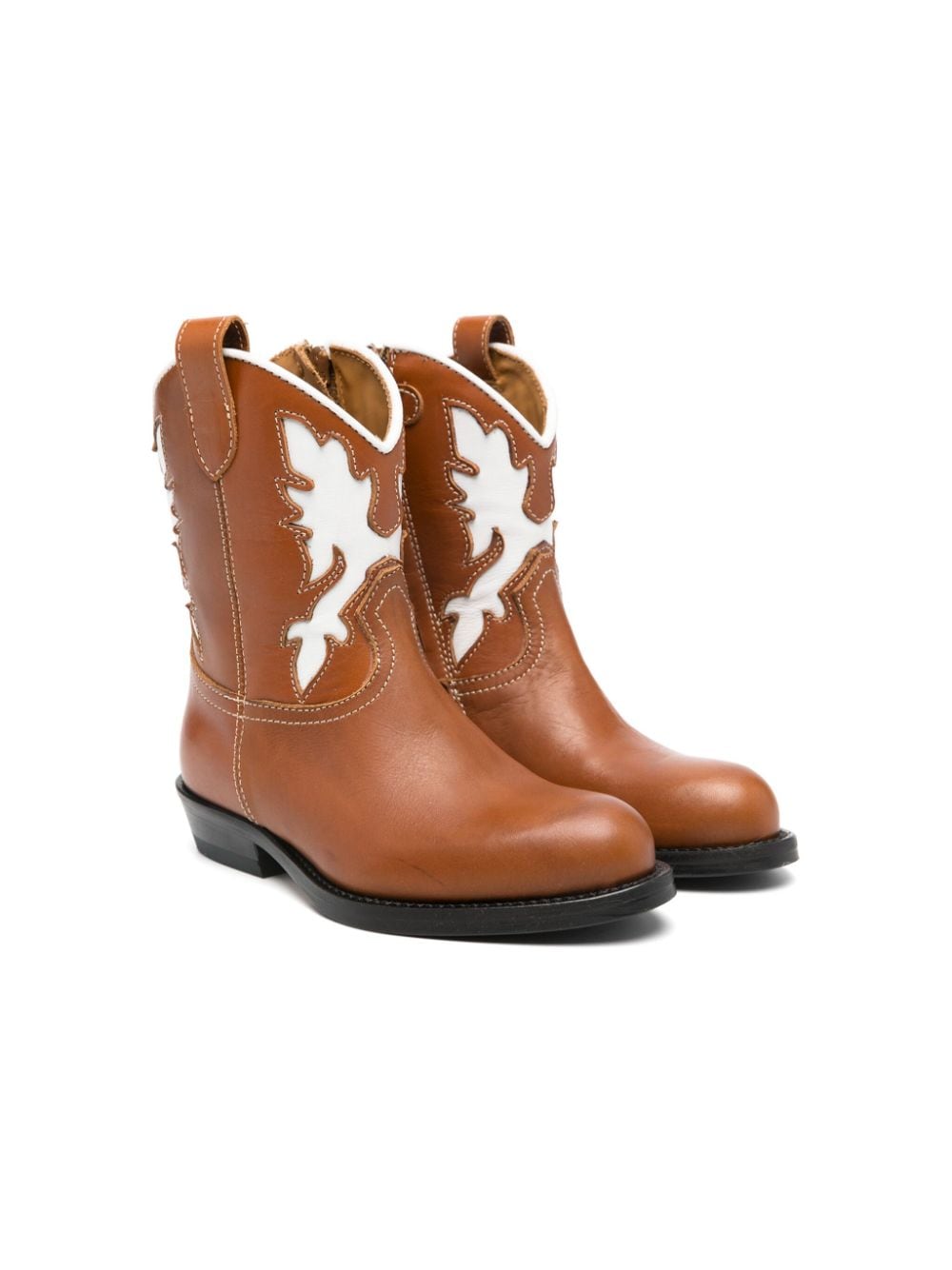 Stivali texani in pelle di vitello marrone cognac/bianco