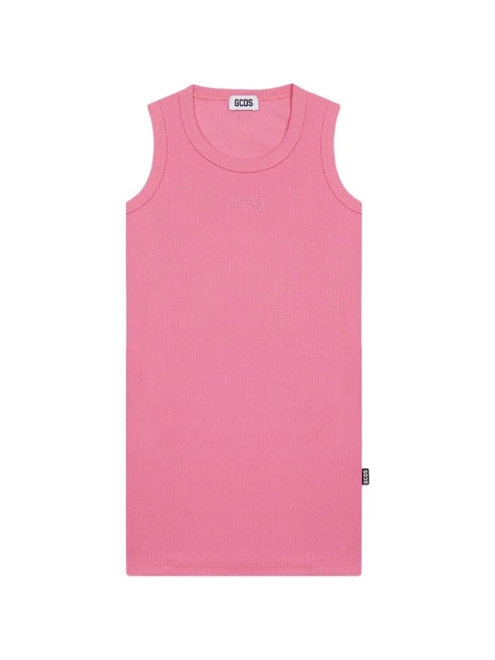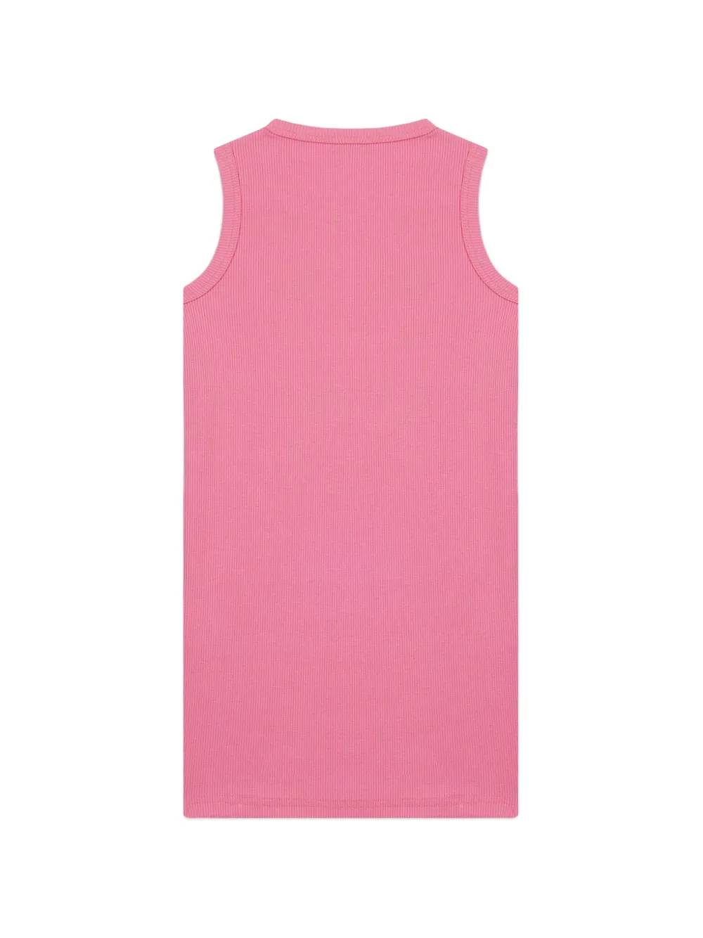 Abito con logo rosalavorazione in maglia a costedettaglio logo ricamatosenza maniche