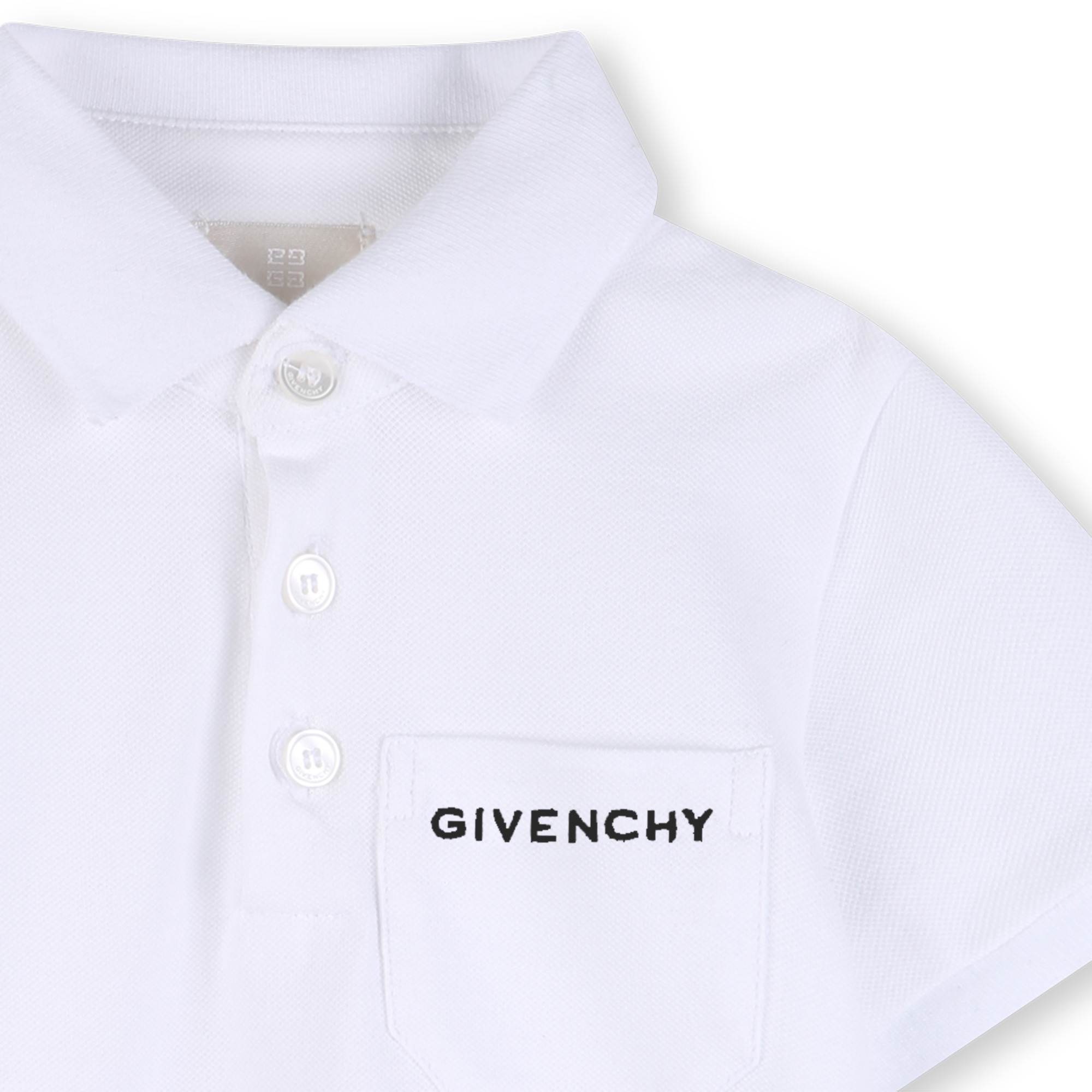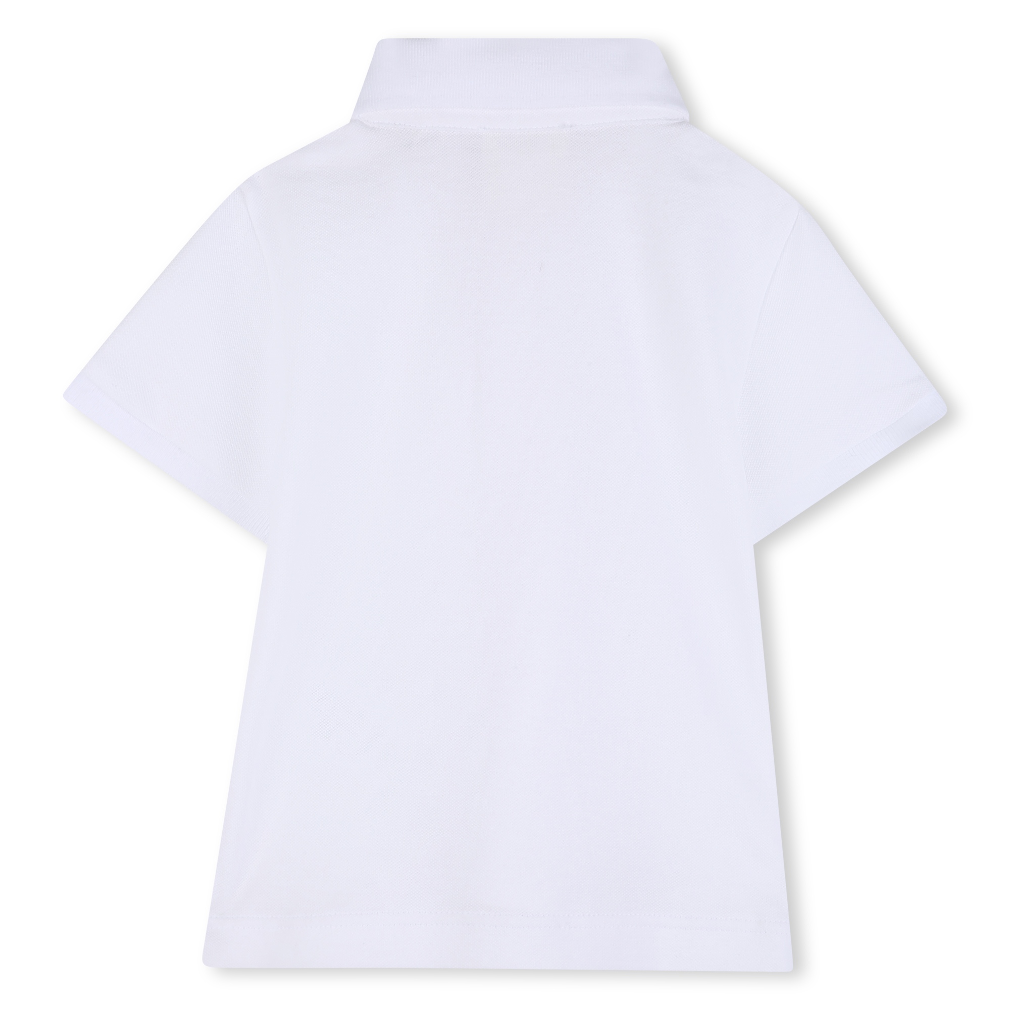 Texture bianca piqué, logo ricamato tasca sul petto, colletto polo, bottone frontale, bottone, maniche corte e orlo dritto