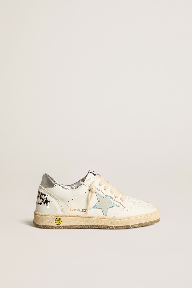 Sneakers Ball Star con lacci. Bianca con stella azzura, talloncino argento.