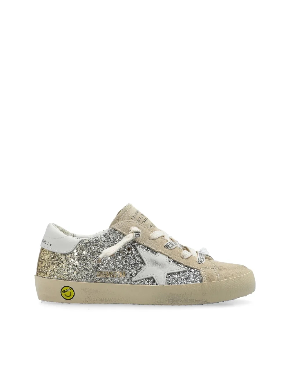 Esterno: pelle di vitello 100%, tessuto 100%, glitter 100%