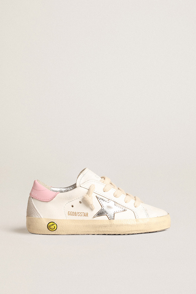Beige, pelle di vitello, dettaglio con applicazione a stella, logo laterale inciso, punta tonda e suola piatta in gomma.