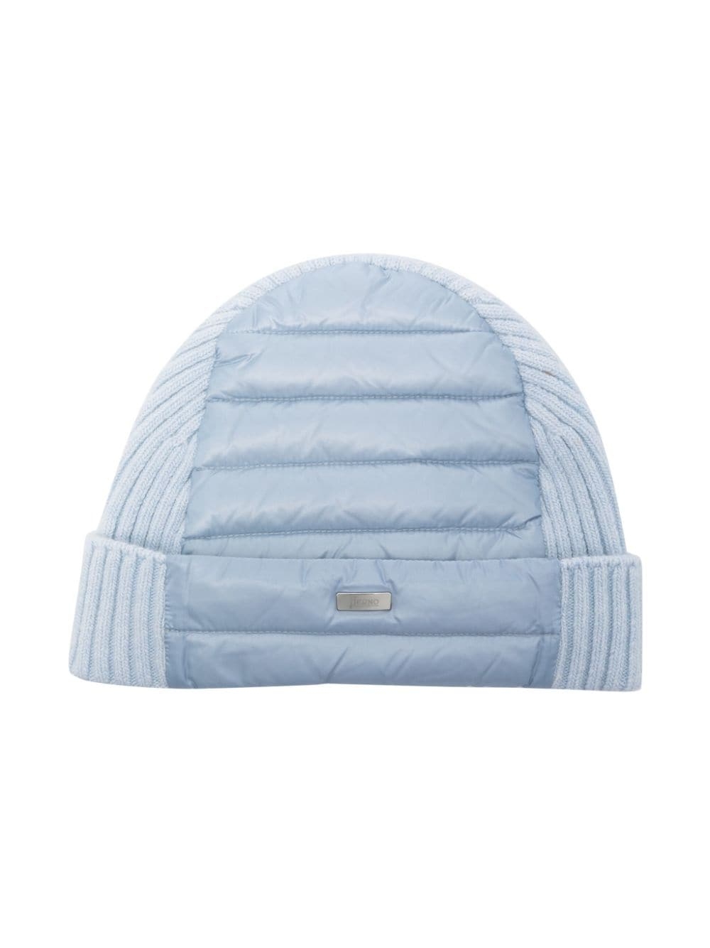 Berretto trapuntato con pannelli in maglia di HERNO KIDS caratterizzato da design azzurro imbottito, pannelli in maglia, pannelli a coste, pannelli trapuntati, placca con logo color argento, visiera risvoltata e stile pull-on.
