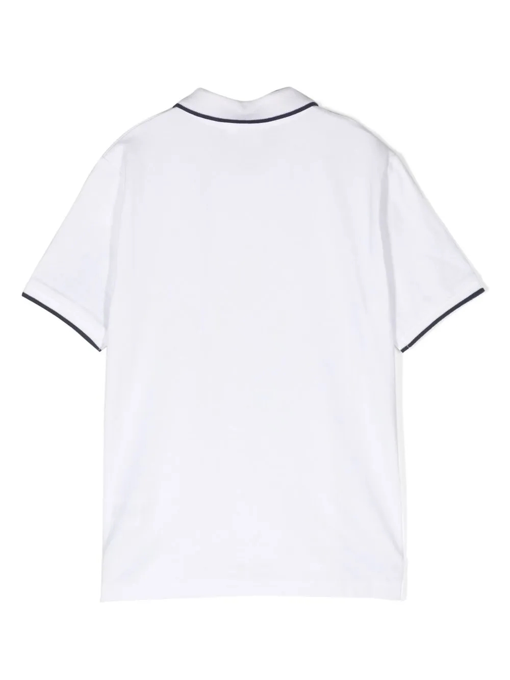 Nero/bianco, cotone, dettaglio a righe, logo goffrato nella parte anteriore, colletto classico, falsatura frontale con abbottonatura e maniche corte.