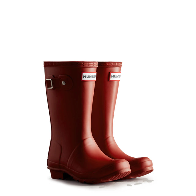 Stivali da pioggia rosso con fibbia laterale e logo cucito sul davanti