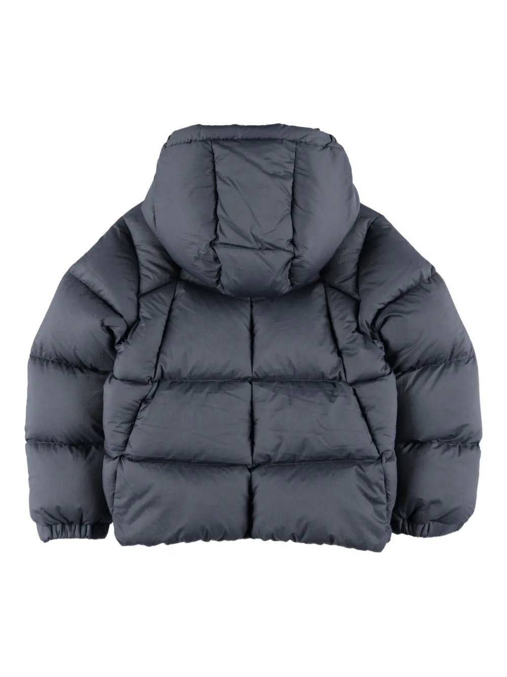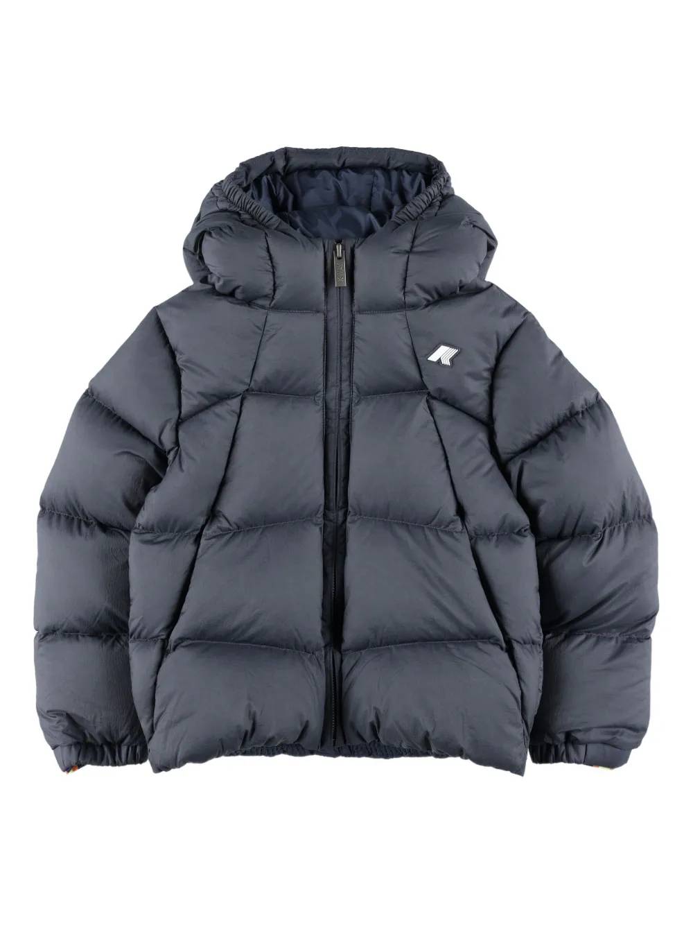 trapuntato blu scuro, con cappuccio, chiusura con zip,
