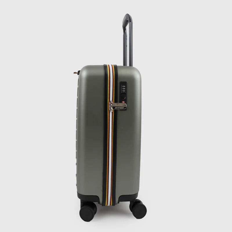 la fodera in poliestere è impreziosita dal logo stampato all-over e include un pannello divisorio rimovibile con inserti in rete, una tasca piccola con zip e un utile sacchetto per la biancheria con chiusura a coulisse